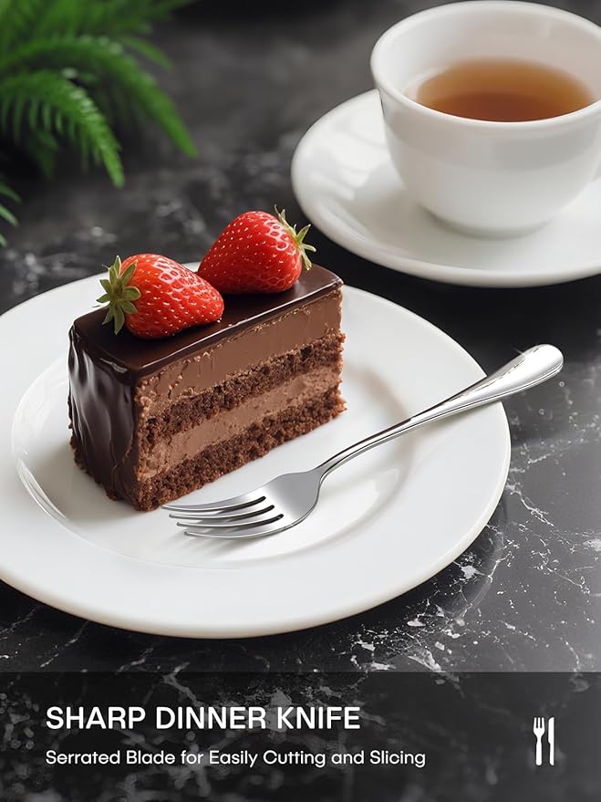 • Lifetime Use: Make of food-grade stainless steel silverware set offers resistance to rust and corrosion. Keep flatware set mirror polished finish through multiple washes!Dishwasher safe & effortless to clean, easily enjoy the fun use experience