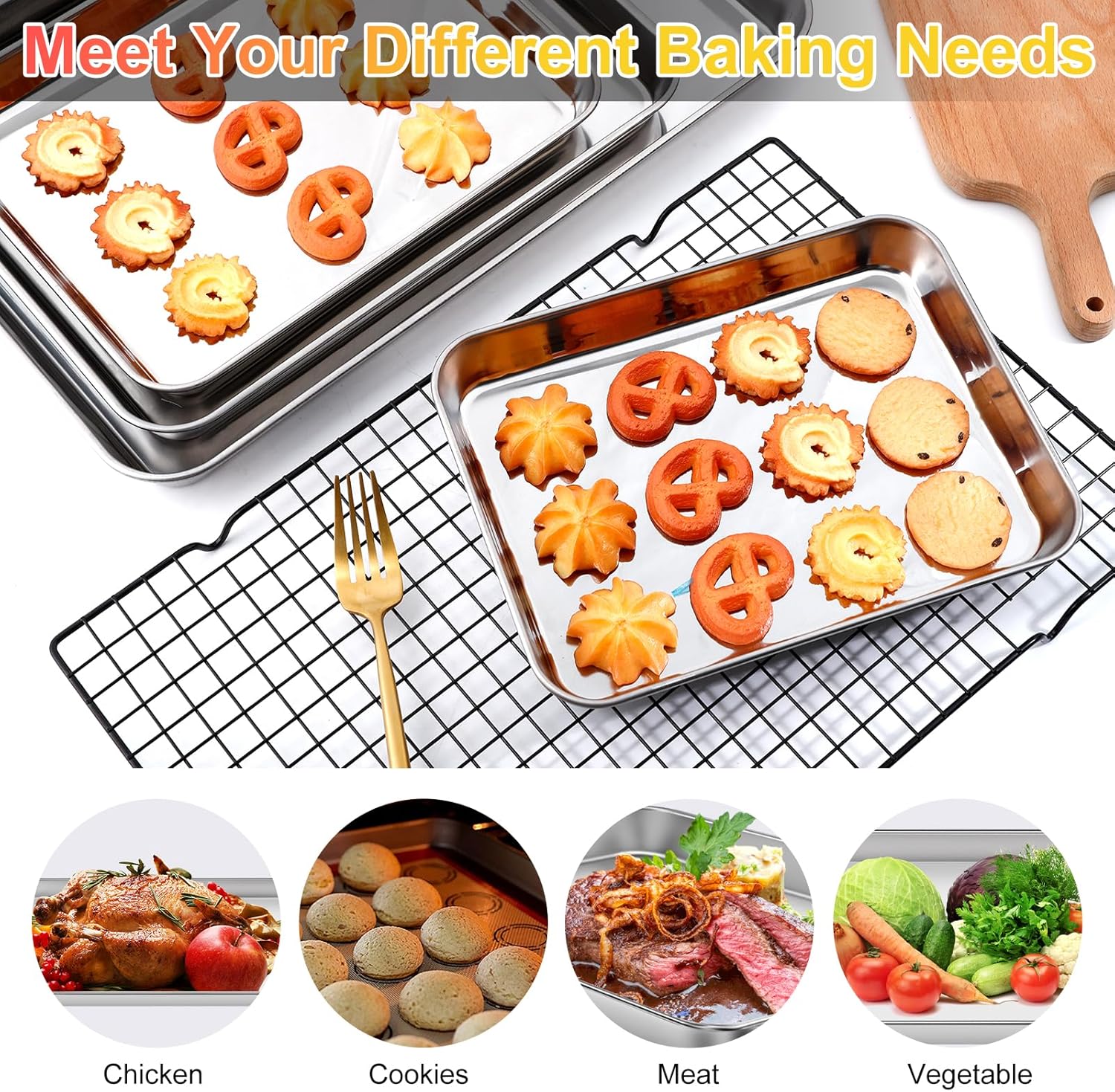 • Easy Clean: Our stainless steel cookie sheets with a superb mirror finish surface, and easy to wash by hand and dishwasher safe, so it can save your time and labor after using. It is fit in most regular home oven and oven