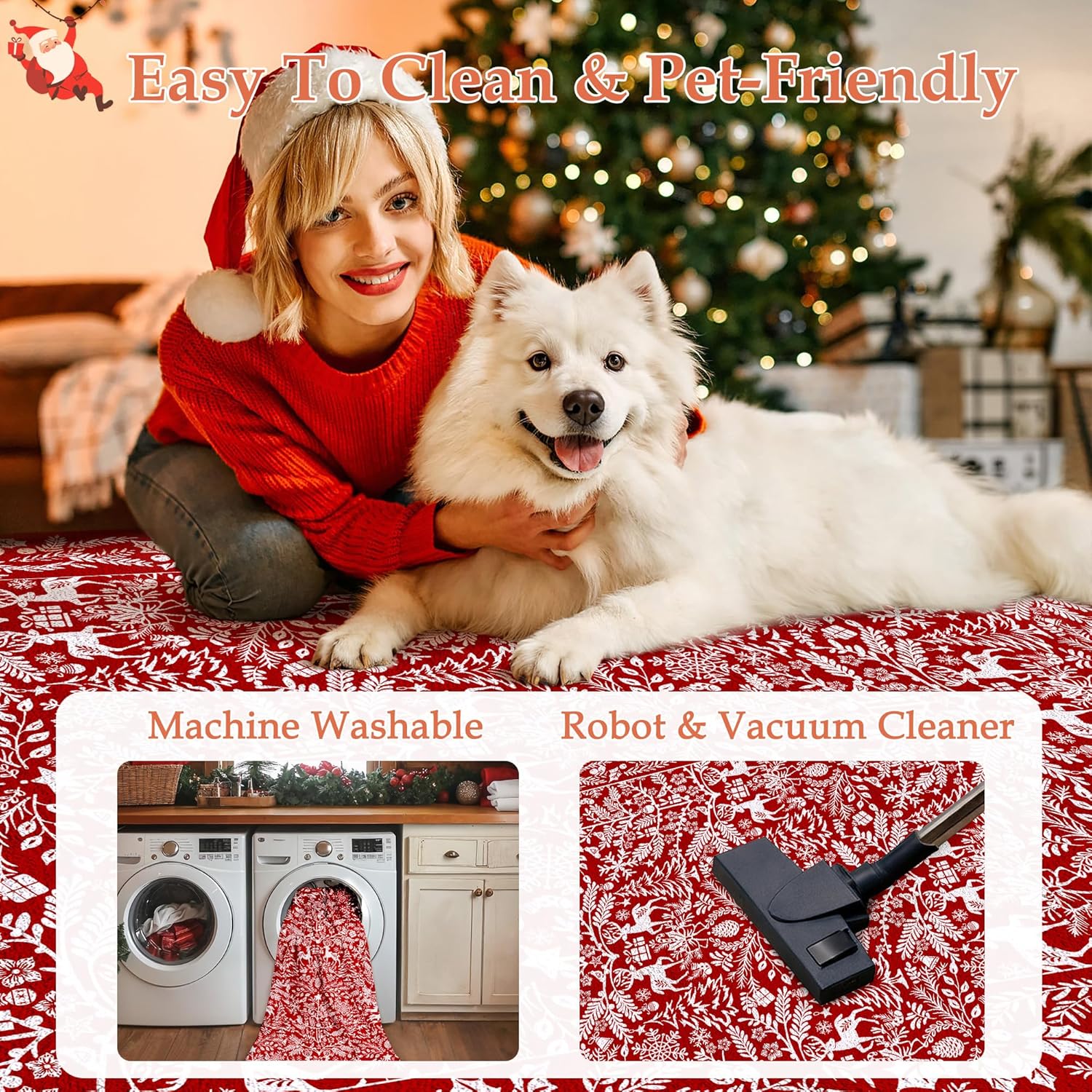 Christmas Area Rug 5x7 Machine Washable Xmas Snowflake Holiday Decor Living Room Rugs Low Pile Carpet Indoor Doormat Red Non-Slip Christmas Deer Carpet for Bedroom Kitchen Entryway Bathroom