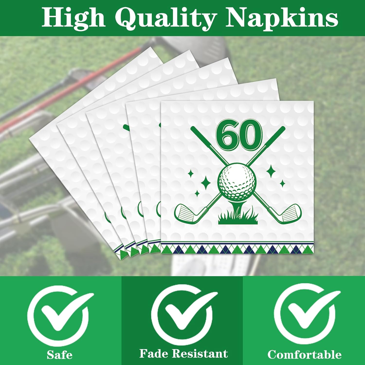 • Golf Themed 60th Birthday Tableware Set: This complete set includes 24 large plates, 24 small plates, 24 napkins, and 24 forks, all designed with a golf motif. Perfect for celebrating a 60th birthday, it brings a sporty touch to your party table