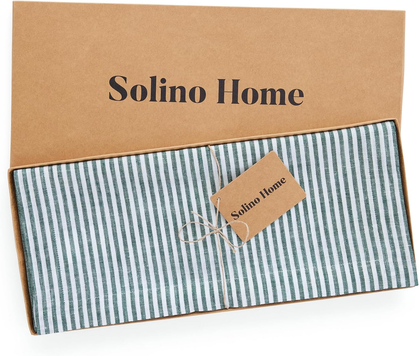 Solino Home Linen Table Runner 120 Inches Long - Narrow Stripe, 100% Pure Linen Rainforest and White Table Runner 14 x 120 Inch for Dining, Christmas