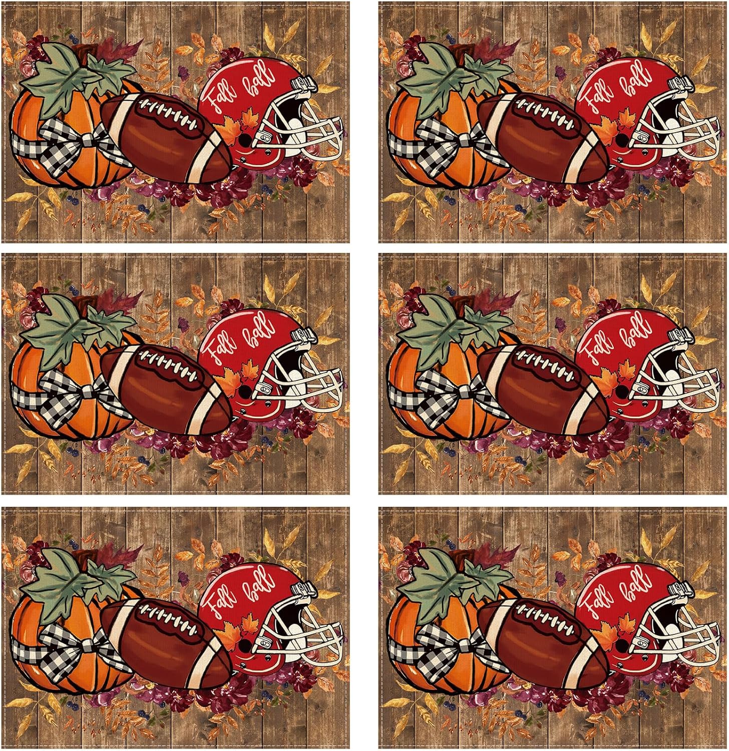 XCHI Fall Football Pumpkin Wood Placemats Set of 6 Table Mats for Party Home Kitchen Dining Table Decorations 12x18 Inch