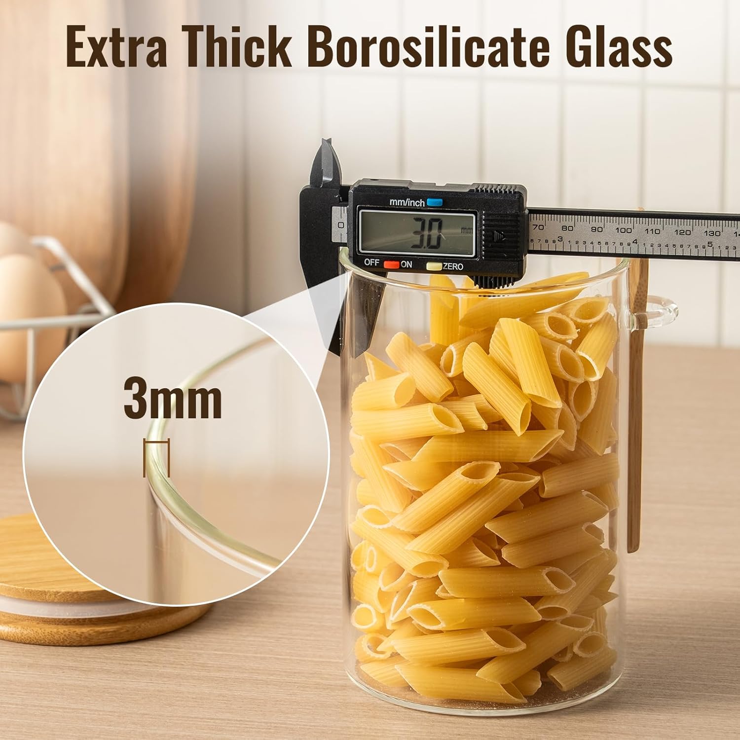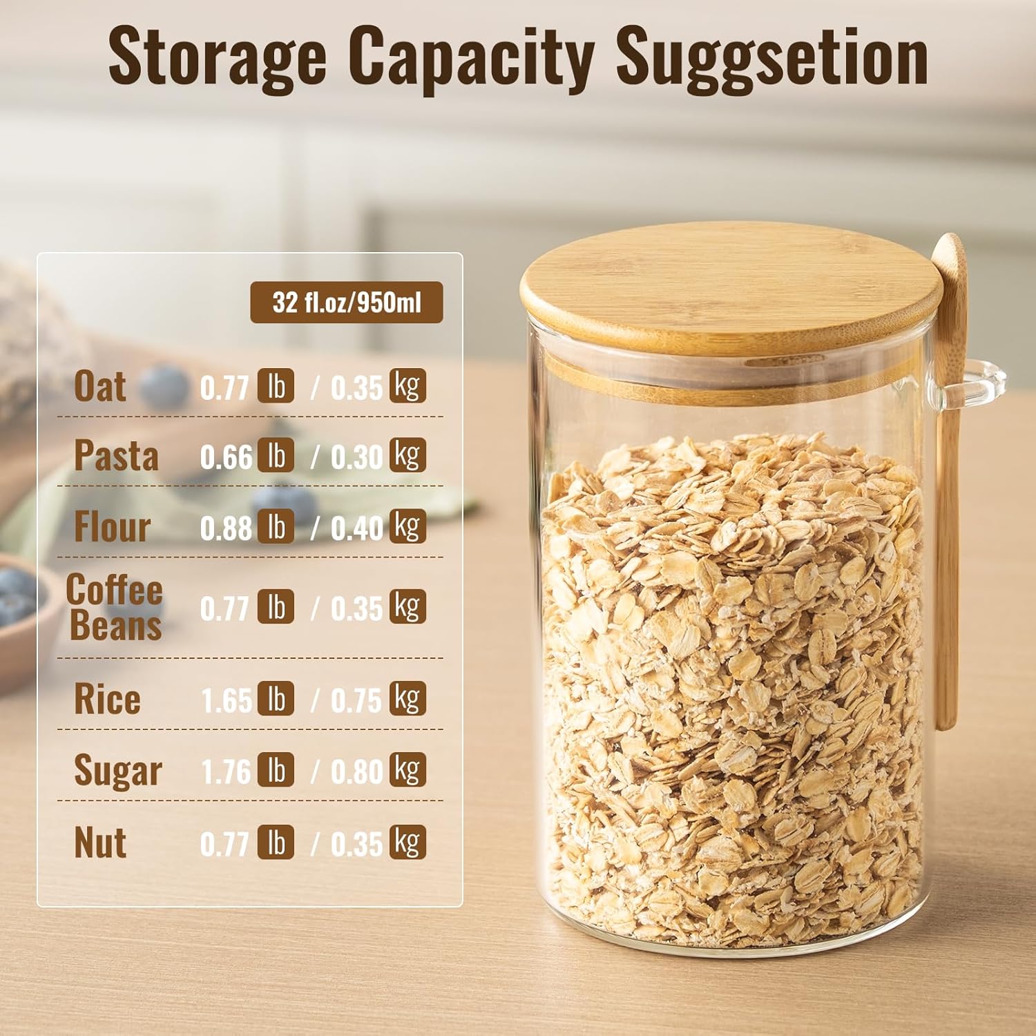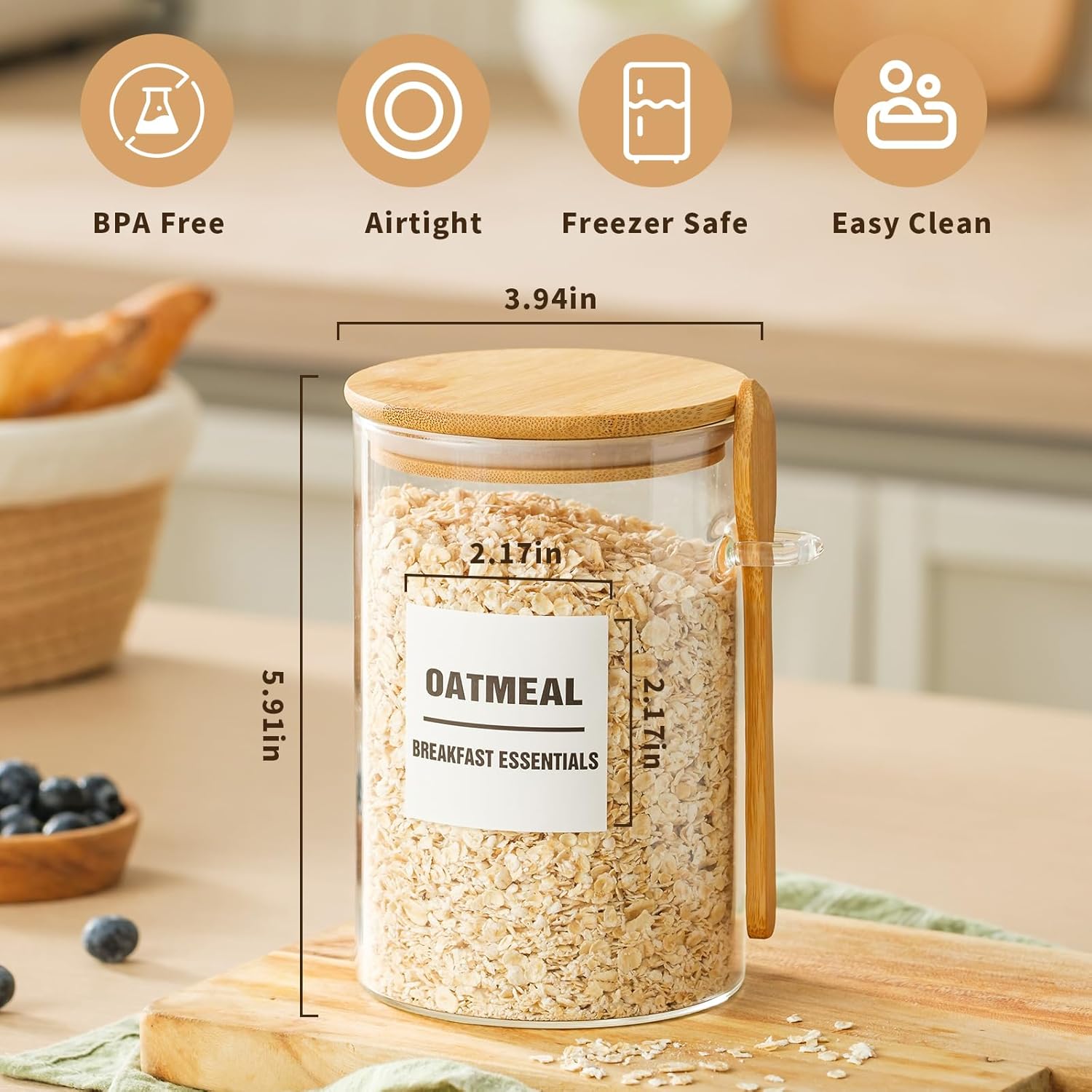 • 3mm Borosilicate Glass & Built-in Spoon Holder:The glass storage jars are crafted with premium BPA-Free glass for food safety.The integrated spoon hook design ensures easy utensil storage,while the wide-mouth structure allows thorough cleaning.Durable and non-toxic,ideal for daily kitchen and pantry use