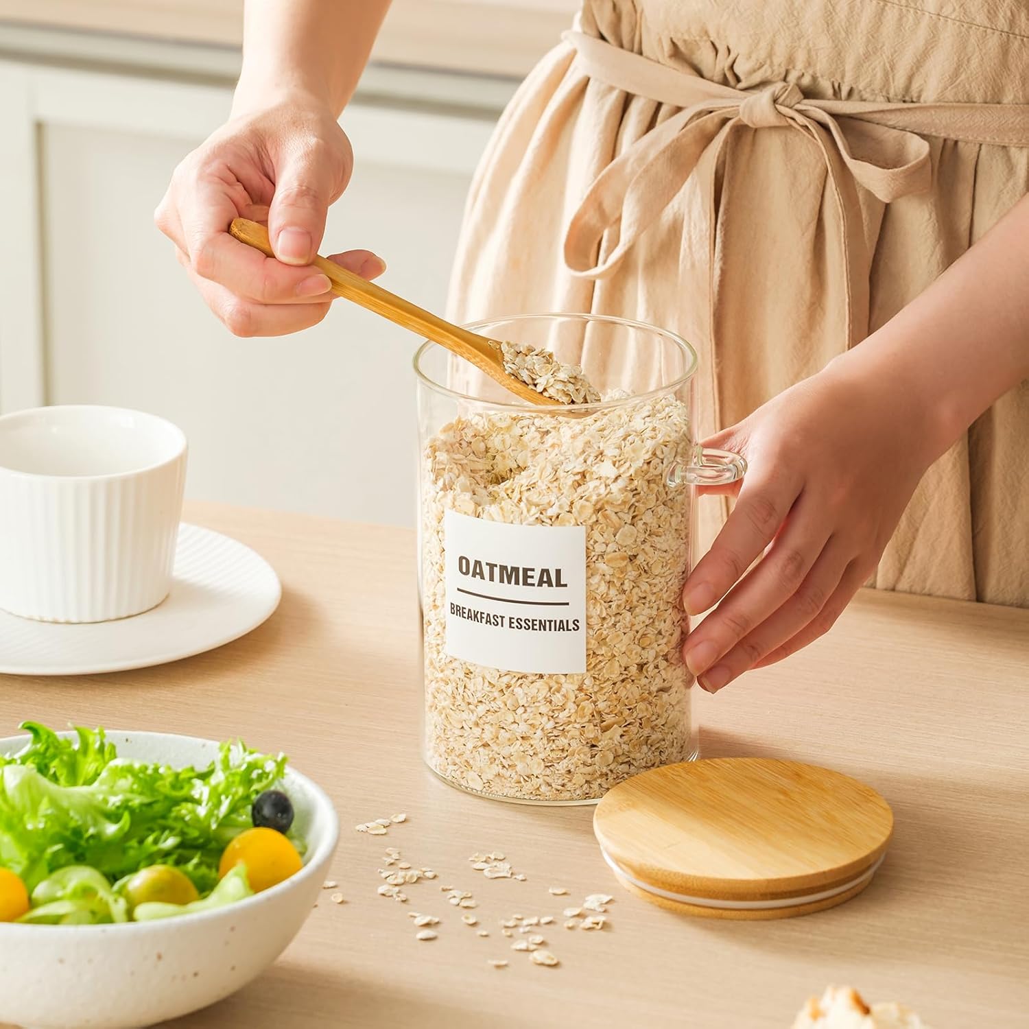 • Stackable Storage Solution:Engineered with a space-saving design,these airtight glass jars with bamboo lids stack securely to maximize cabinet or countertop space.Ideal for small kitchens or pantries seeking clutter-free organization