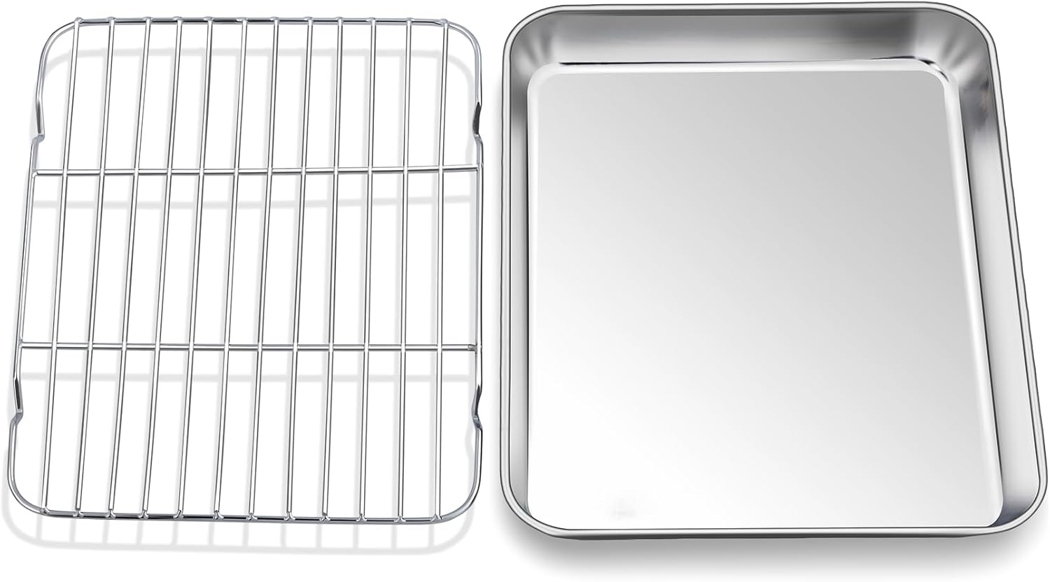 • Widely Used: Baking sheet with rack set fits most ovens and toaster ovens, can be used together or separately. Perfect for baking cookies, pastries, breads, or roasting meats and vegetables. Great for dinners, cakes, chicken, bacon, or crisping foods, making your cooking and baking more enjoyable.