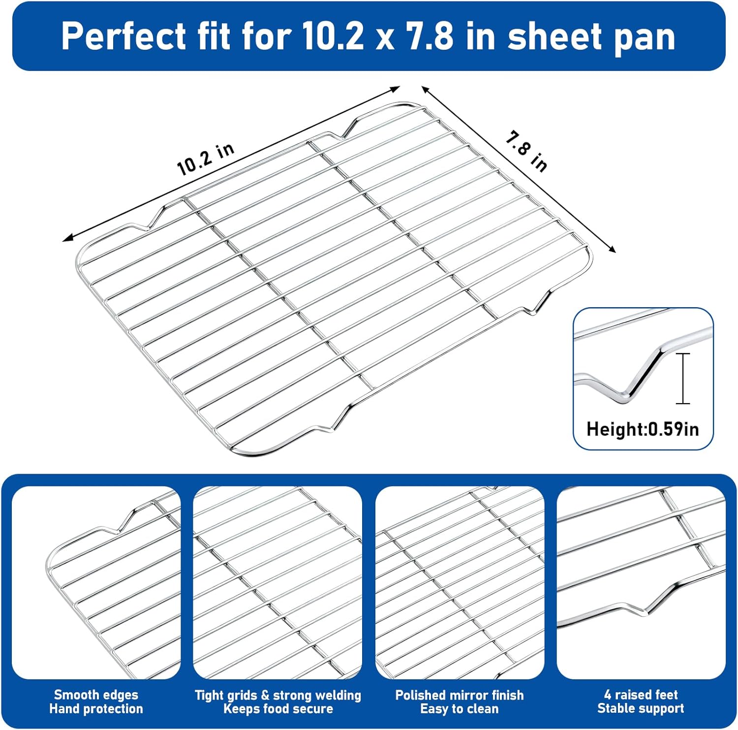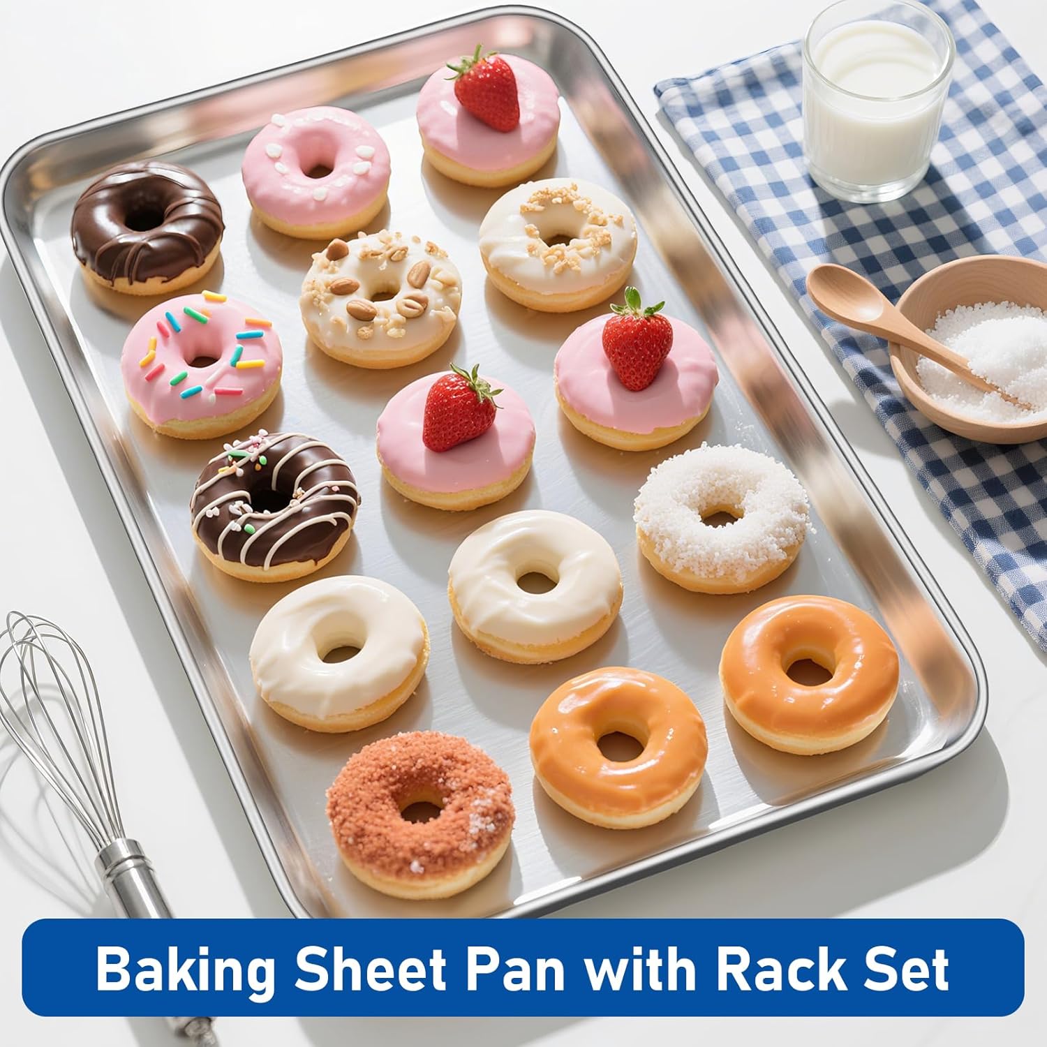 Baking Sheet with Rack Set,10.2 Inch Stainless Steel Baking Pan Tray Cookie Sheet with Cooling Racks,Nonstick Bacon Cookie Trays for Cooking Roasting,Dishwasher Safe,Heavy Duty & Easy Clean