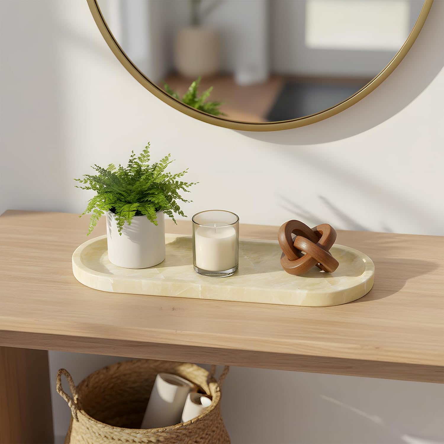 • Versatile Organization Tray Use this small marble tray to neatly display perfumes, hold jewelry, or organize keys. It fits perfectly as a marble tray for bathroom countertop, on a desk, or on a windowsill, keeping your essentials tidy and within reach.