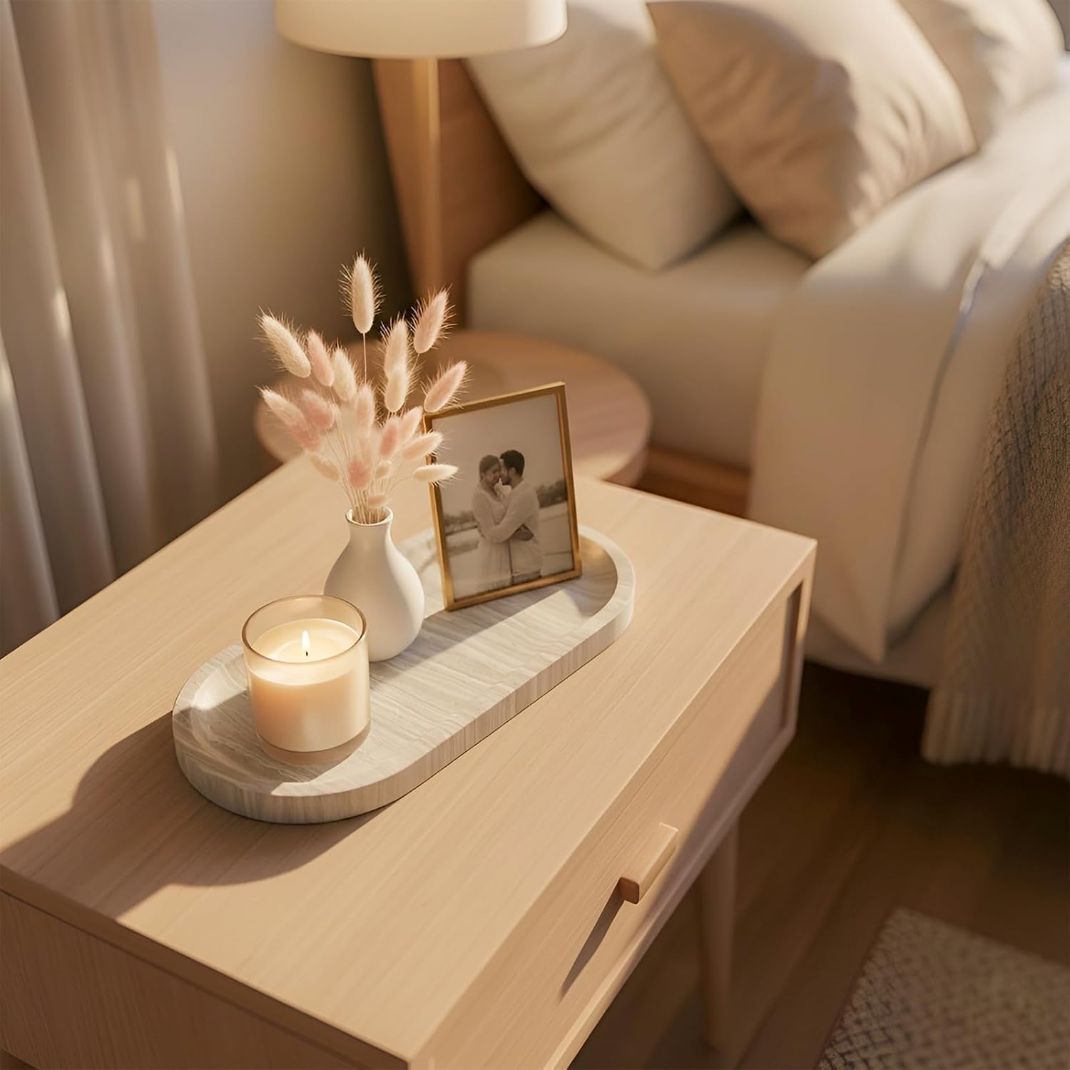 • Compact & Space-Smart Measuring 12" x 6", this small marble tray fits neatly in bathrooms, on vanities, or in kitchens. It’s one of the most adaptable marble trays for small spaces and daily use.