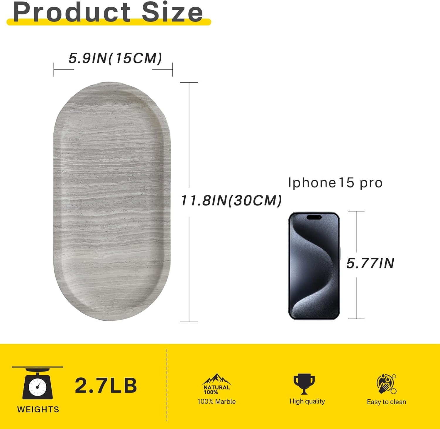 • Natural Marble Tray with Minimalist Design Made from solid natural marble, this versatile marble tray features a subtle stone texture. Its simple runway shape works as a marble vanity tray in the bedroom, a marble soap tray in the bath, or a functional marble tray for kitchen counter use.