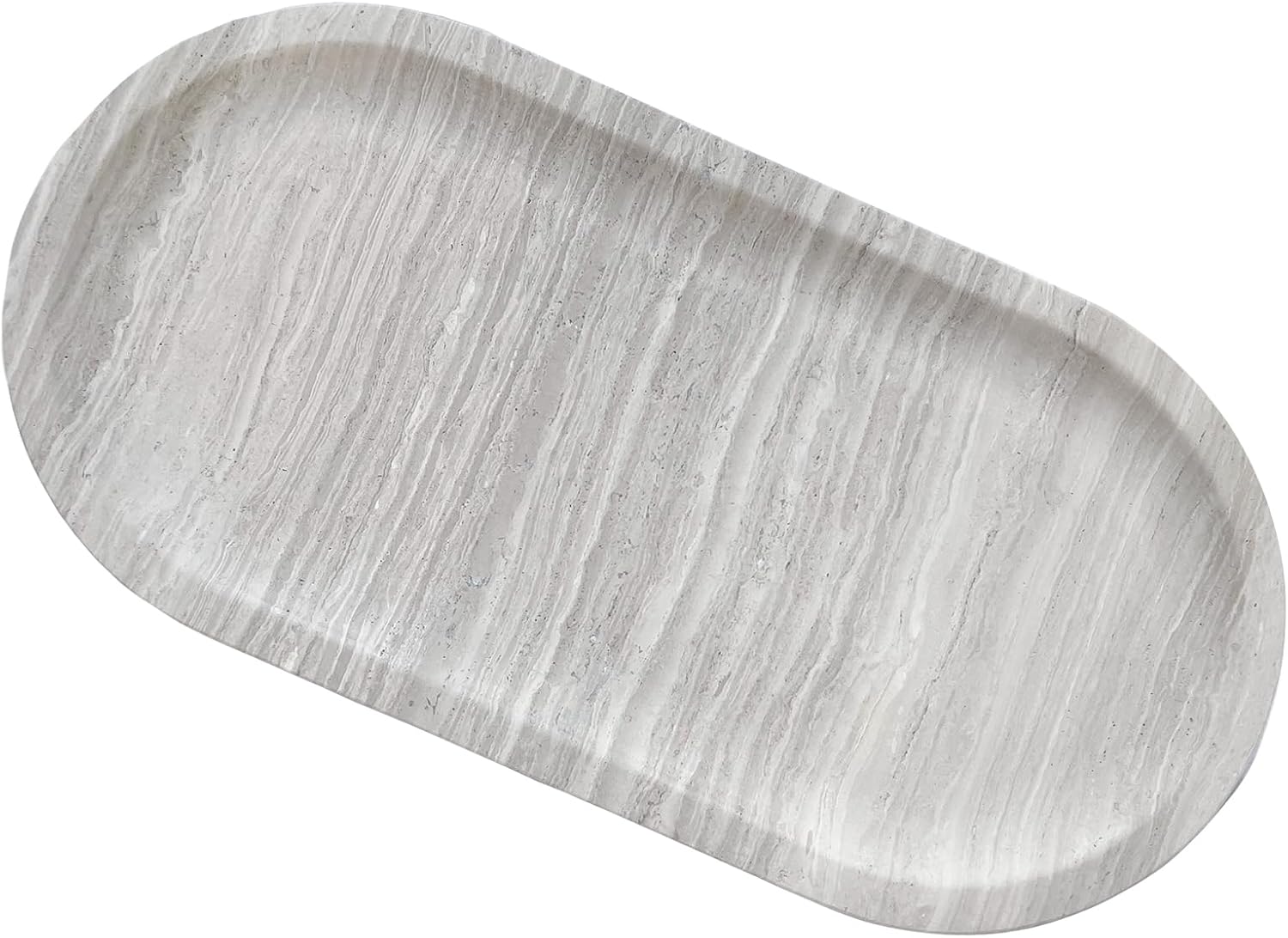 Natural Marble Tray, Stone Vanity Tray for Bathroom & Kitchen Countertop - Organizer for Perfume, Jewelry, Cosmetics 12x6 Inch,Gray Wood Grain