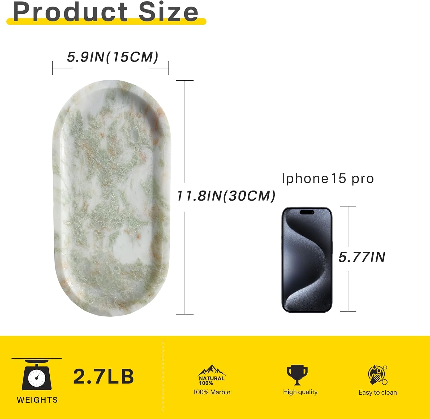 • Compact & Space-Smart Measuring 12" x 6", this small marble tray fits neatly in bathrooms, on vanities, or in kitchens. It’s one of the most adaptable marble trays for small spaces and daily use.