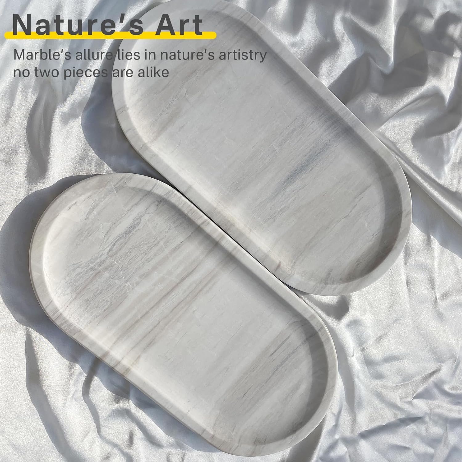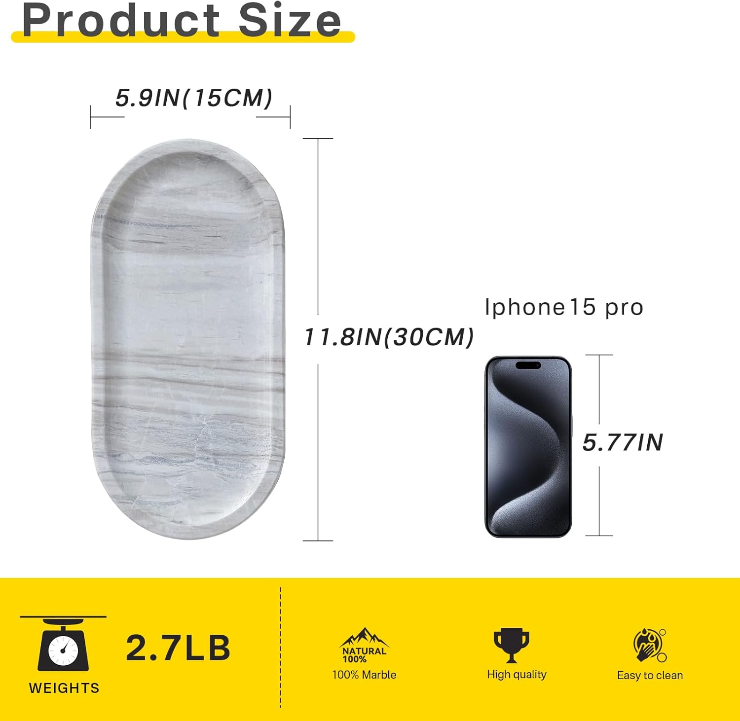 • Natural Marble Tray with Minimalist Design Made from solid natural marble, this versatile marble tray features a subtle stone texture. Its simple runway shape works as a marble vanity tray in the bedroom, a marble soap tray in the bath, or a functional marble tray for kitchen counter use.