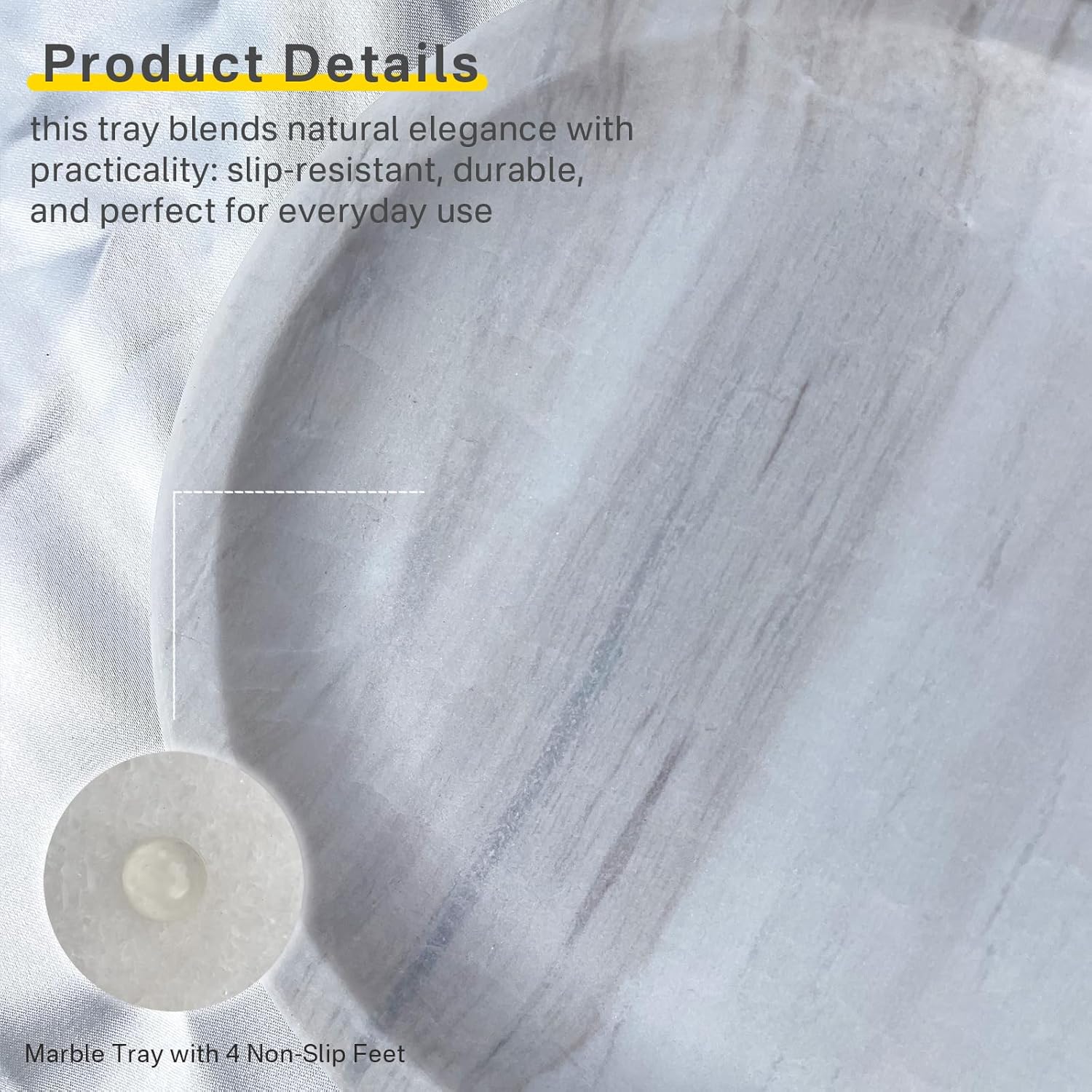• Compact & Space-Smart Measuring 12" x 6", this small marble tray fits neatly in bathrooms, on vanities, or in kitchens. It’s one of the most adaptable marble trays for small spaces and daily use.