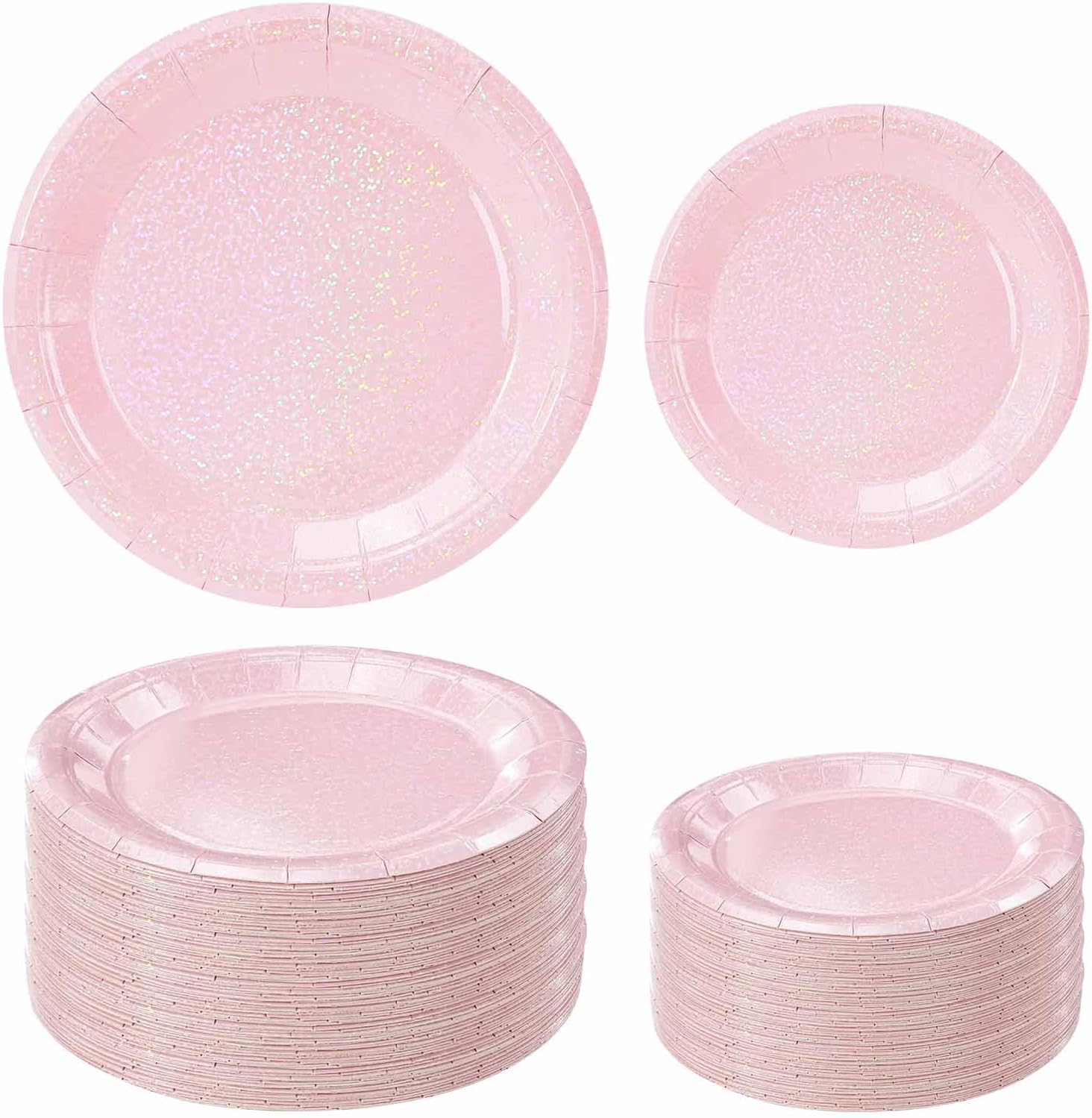 • Dinner plates disposable: The light pink glitter paper plates creates a mesmerizing iridescent sparkle, making it suitable for various party. The holographic paper plates with disposable design can reduce cleaning time, allowing you to enjoy more family time
