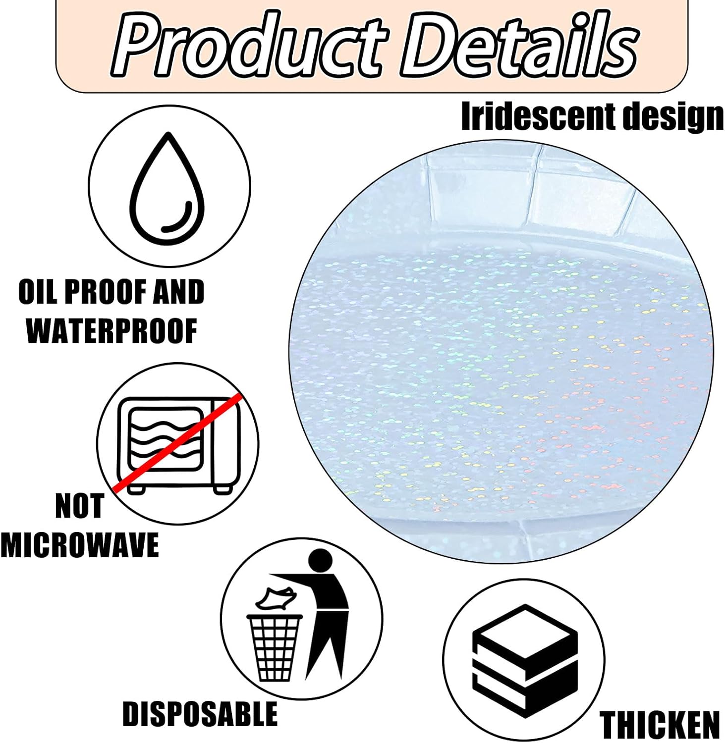 • Dinner plates disposable: The light blue glitter paper plates creates a mesmerizing iridescent sparkle, making it suitable for various party. The holographic paper plates with disposable design can reduce cleaning time, allowing you to enjoy more family time