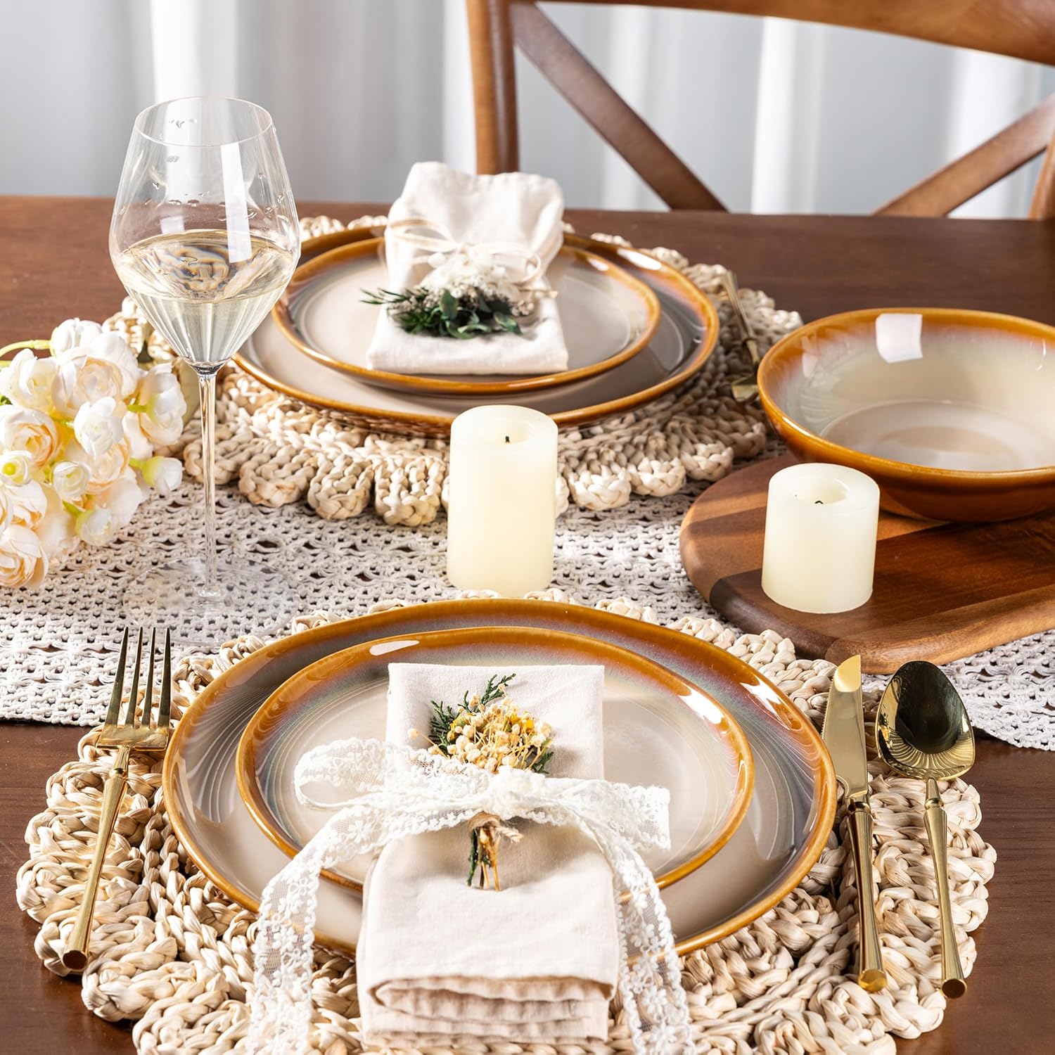 • 【LEAD FREE EAT SAFTY】Our plates and bowls set is made of druable material and features an all-natural glaze that is lead-free, cadmium-free. The set is fired at a high temperature of 2340℉ for 17 hours to ensure its durability and safety. With this dinnerware set, you'll never have to worry about any health problems.
