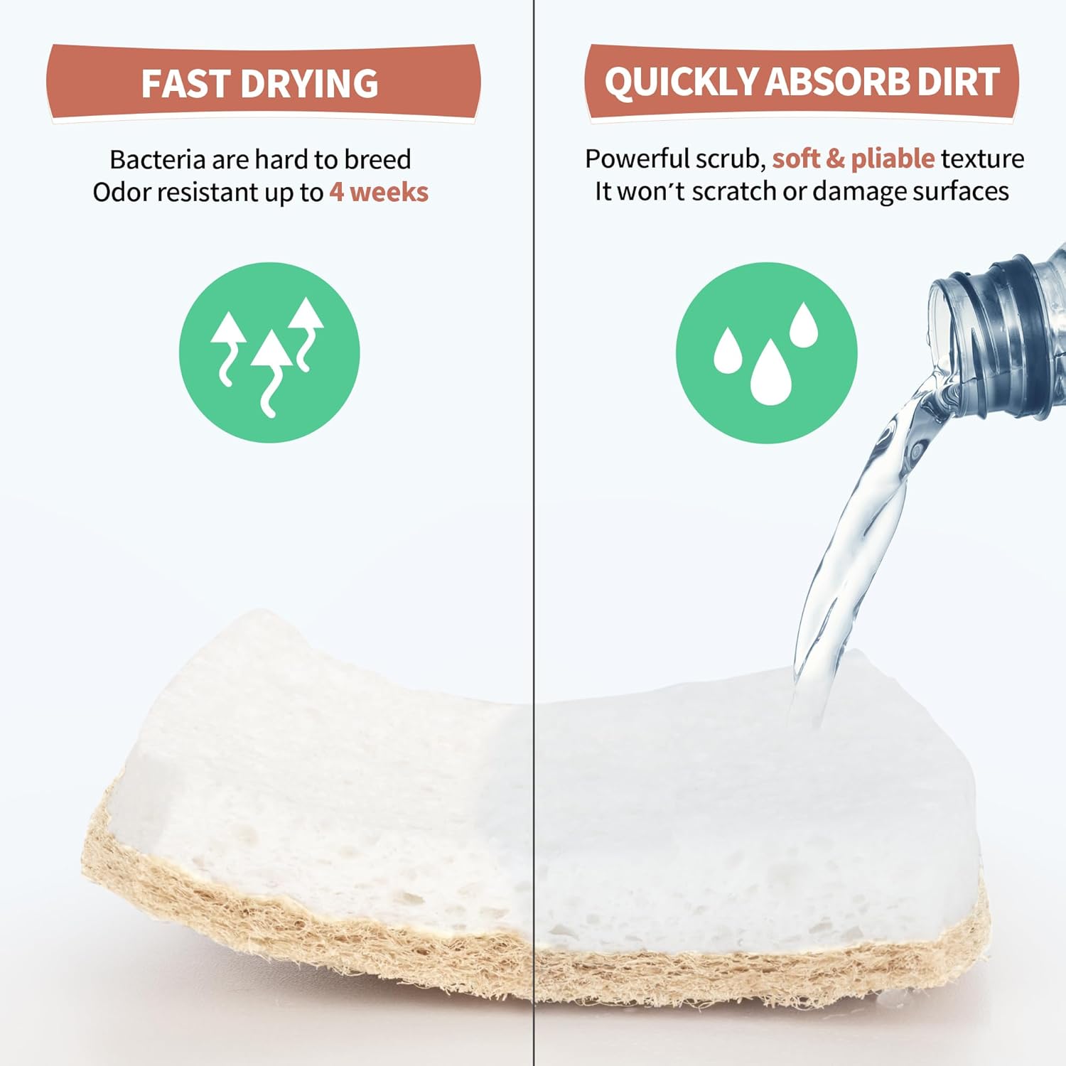 • Long-lasting Durability & Cost-effective: Unlike other sponges, these natural sponges for dishes are built to last. Made with high-tech materials that are carefully selected, they can withstand repeated use without falling apart or losing their effectiveness. With proper care and maintenance, our kitchen sponges can last for months, helping you save money and reduce waste in the long run.