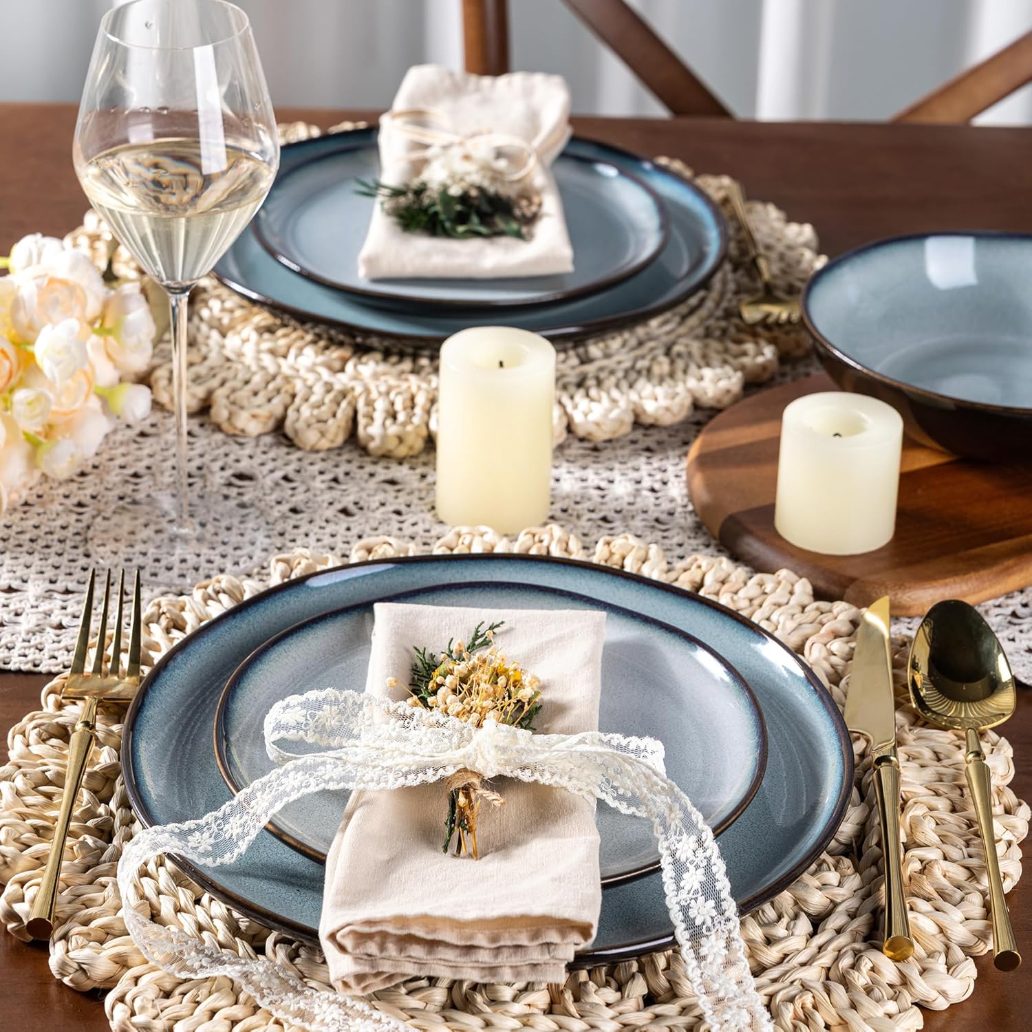 • 【LEAD FREE EAT SAFTY】Our plates and bowls set is made of druable material and features an all-natural glaze that is lead-free, cadmium-free. The set is fired at a high temperature of 2340℉ for 17 hours to ensure its durability and safety. With this dinnerware set, you'll never have to worry about any health problems.