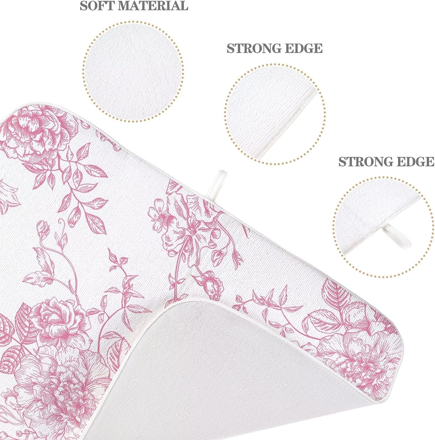 Pink Chinoiserie Floral Dish Drying Mat 18 x 24 inch Vintage Flower Decorative Drying Mats Microfiber Absorbent Dish Washable Draining Mat for Kitchen Counter Decor