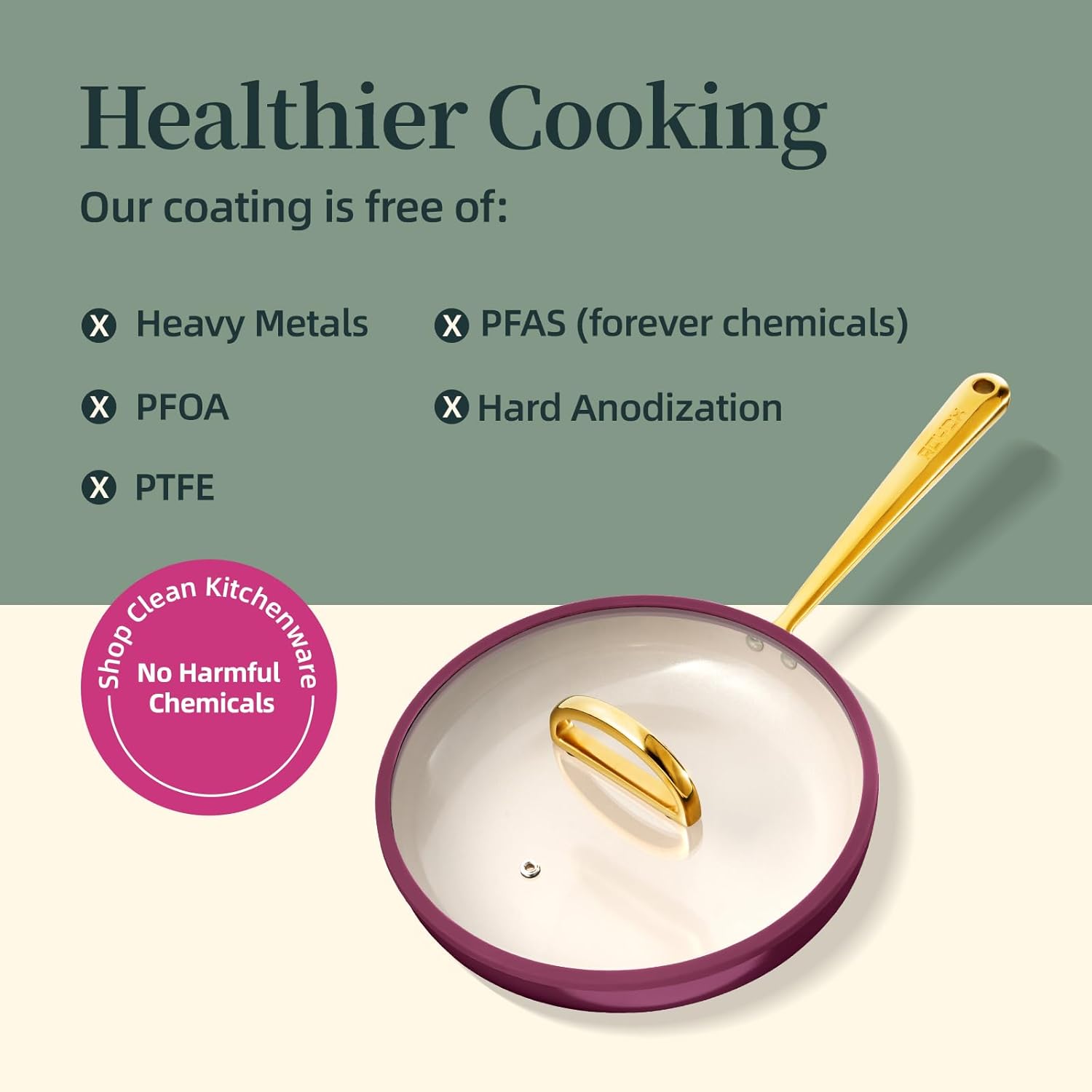 • Non-Toxic Cooking: PFAS-free titanium ceramic coating made with food-grade materials, rigorously tested to exclude PFOA, PTFE, lead, and cadmium. Safe for daily family cooking. Plus, it's oven-safe, with both the handle and nonstick coating able to withstand temperatures of up to 570°F.