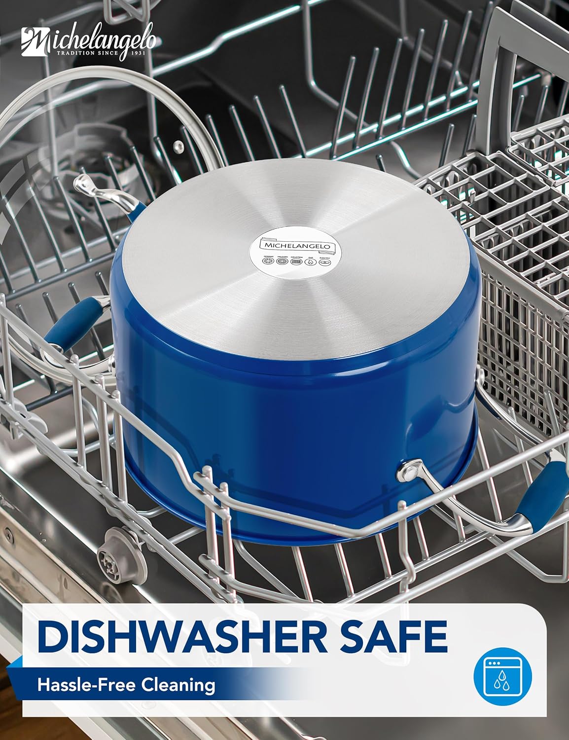 MICHELANGELO Stainless Steel Stock Pots - Induction Soup Pot with Lid, 6 Qt Non-Toxic Cooking Pot, Oven & Dishwasher Safe, Blue Exterior