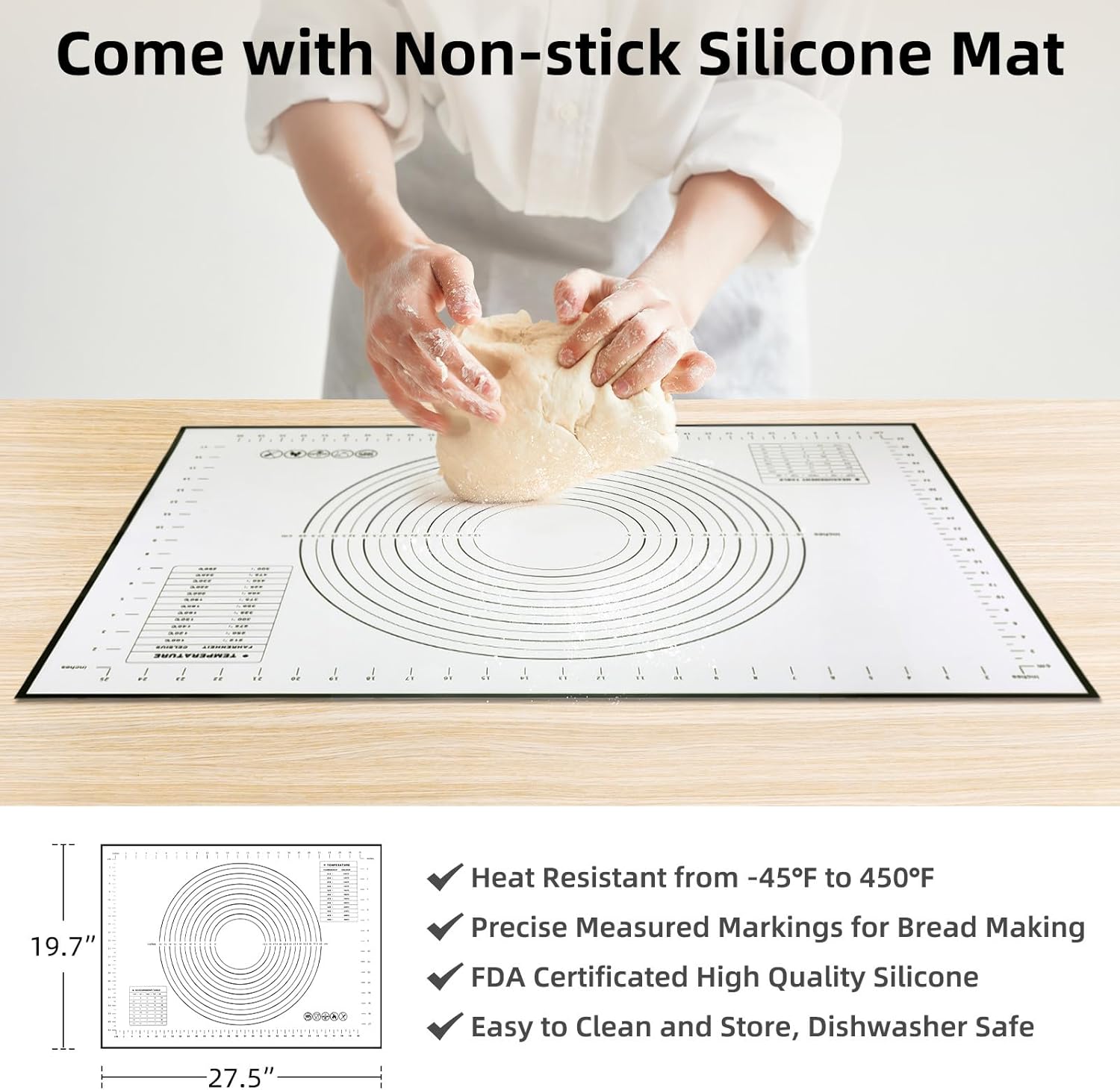 • ★【Versatile Dutch Oven & Come with Silicone Mat】Davivy Bread Dutch Oven is ideal for all types of bread: round loaves, bastard oval loaves, sourdough, baguettes and more. It is applicable for various cook tops: ovens, gas stoves, electric stoves, induction stoves. Our Bread Oven with Lid also comes with a 19.7" x 27.5" baknig mat has measured markings for bread making or any other recipes. Have fun exploring your handmade recipes!