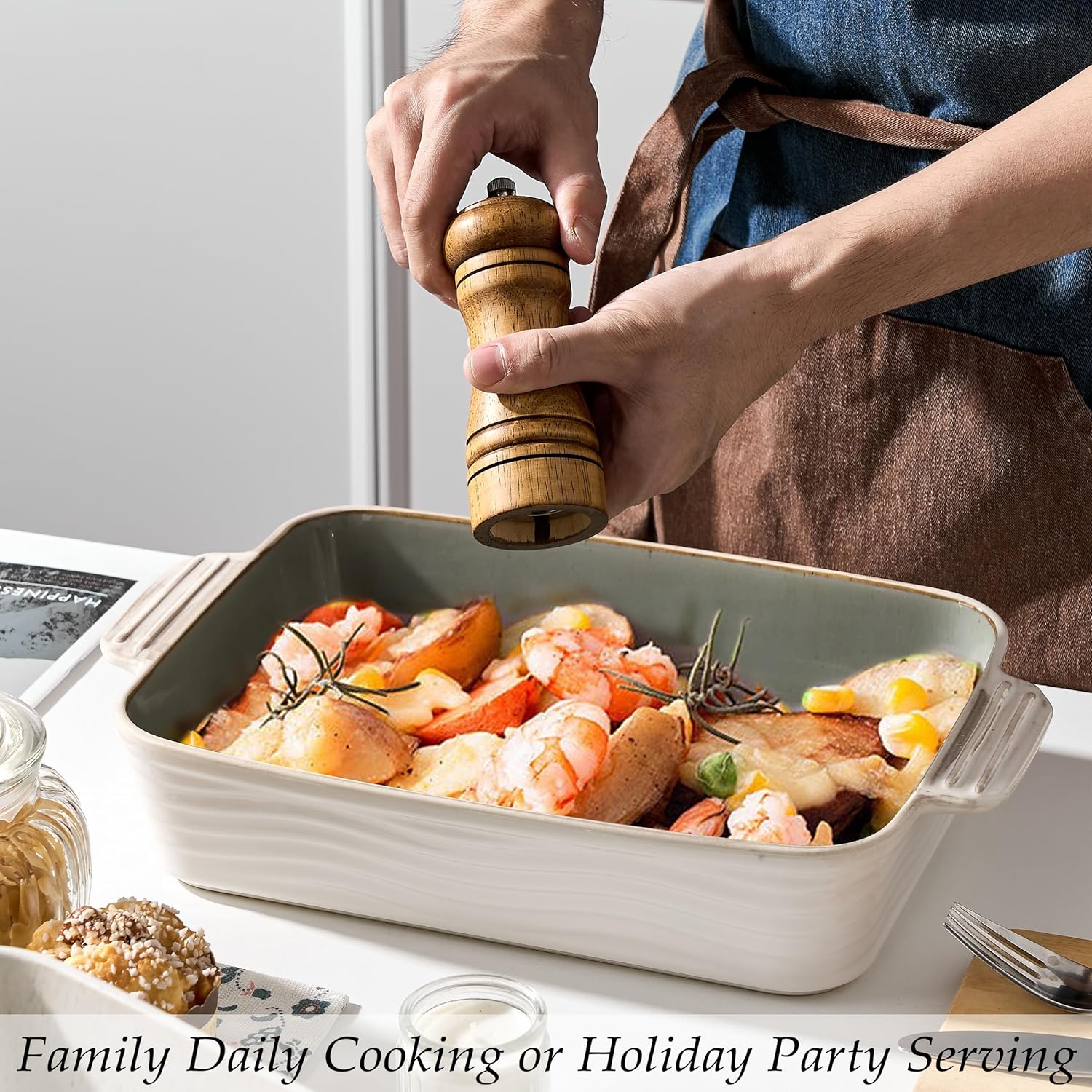 • 𝐀𝐝𝐝 𝐅𝐮𝐧 𝐭𝐨 𝐘𝐨𝐮𝐫 𝐓𝐚𝐛𝐥𝐞: Baking Dish perfect for cooking lasagna, casseroles, chicken, roast, bread, pasta, beef, pumpkin, soup, flan, gratin, loaf, bean, cassoulet, oyster, potato, quiche, etc.