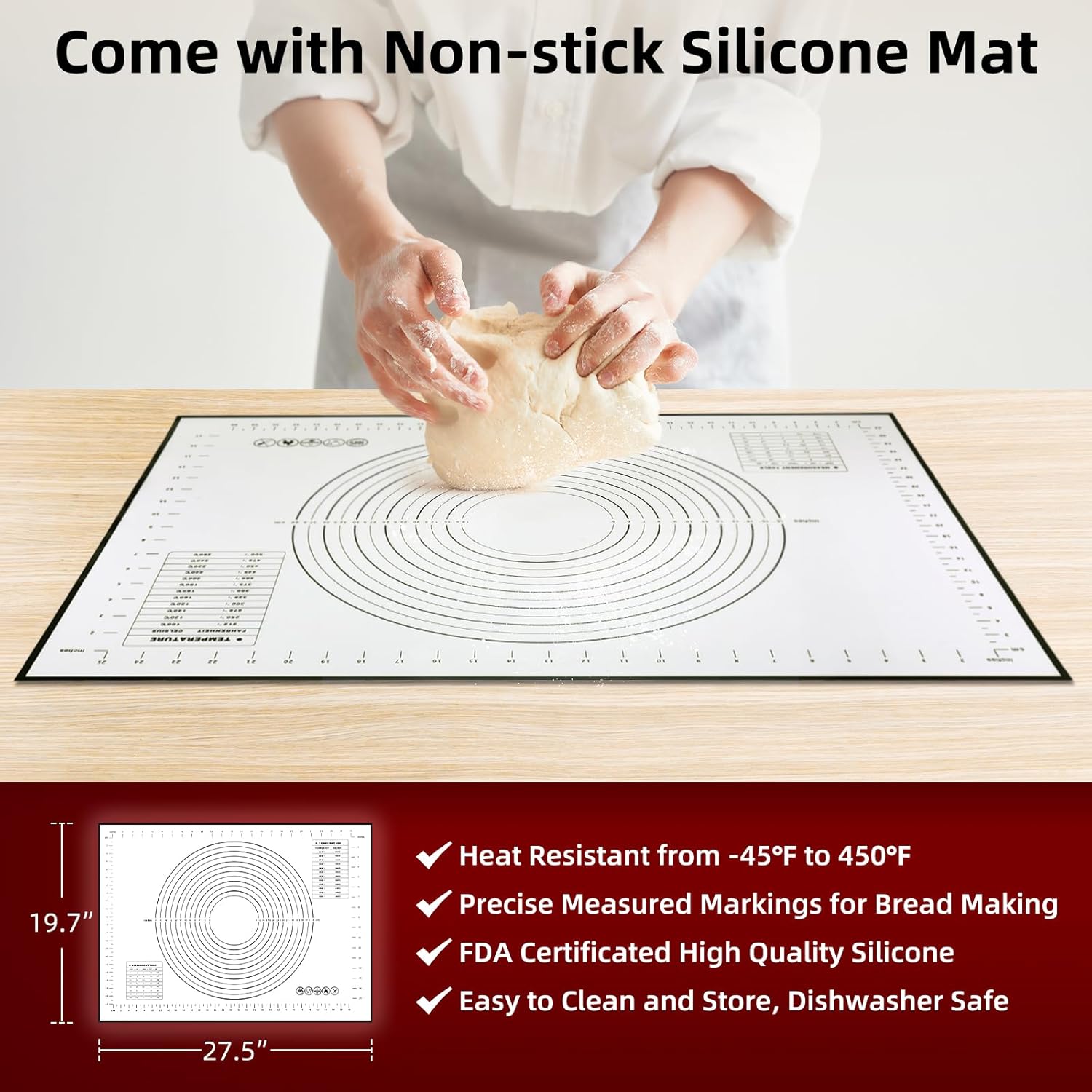 Davivy 9QT Large Dutch Oven for Sourdough Bread with Silicone Baking Mat, Pre-Seasoned Non-stick Cast Iron Sourdough Loaf Pan, Cast Iron Sourdough Baking Pan Large Capacity