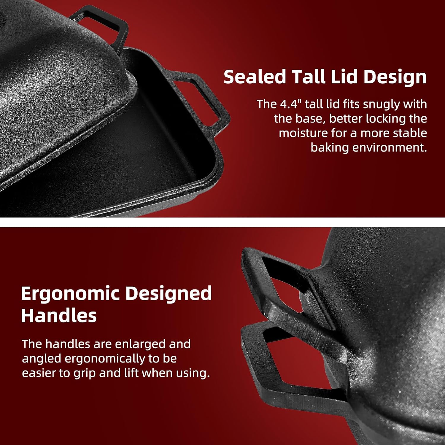 • ★【Tall Lid with Sealed Design & Ideal for Crispy Crust】Designed with a tall domed lid, our Cast Iron Bread Pans facilitate better heat and steam circulation. The lid fits snugly with the base, better locking the moisture and heat inside for a more stable baking environment. Results in a soft and chewy bread with golden crispy crust. Our Pre-Seasoned Loaf Pans are ideal for sourdough starters, experts and home users.