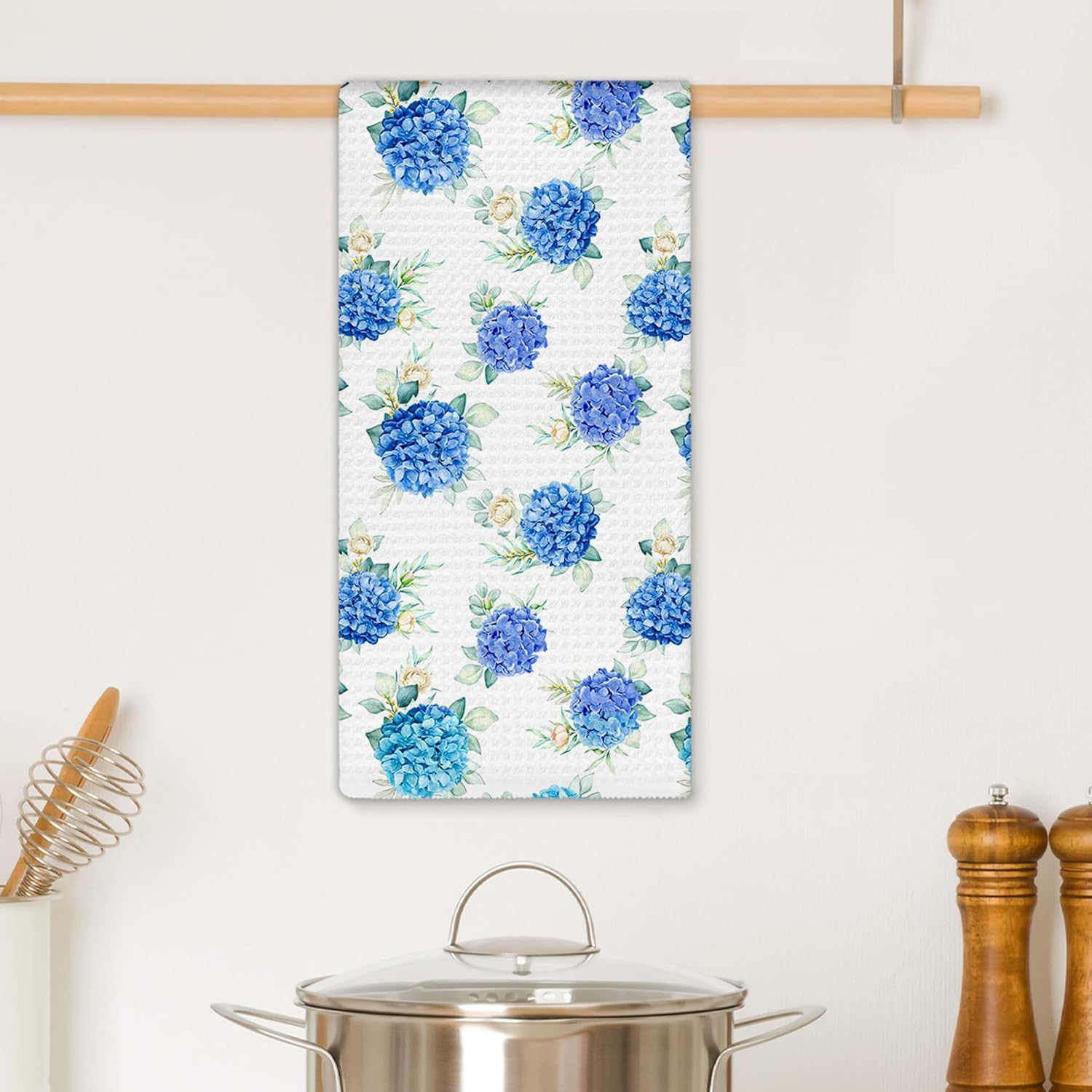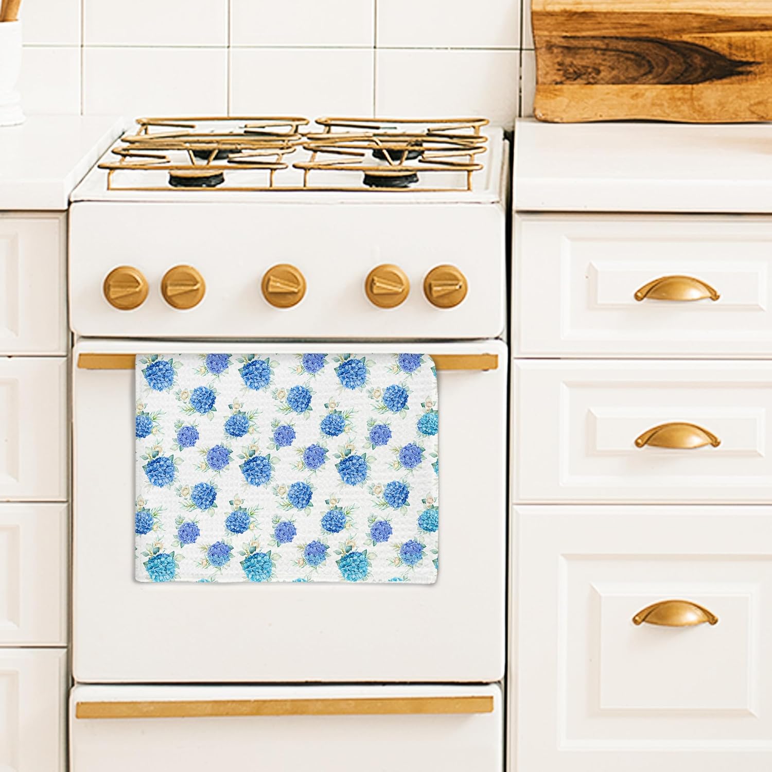 Blue Hydrangea Flower Kitchen Towels, Vintage Farmhouse Floral Hand Towels for Bathroom Decor, Rustic Cottagecore Hydrangea Dishcloths Dish Towel for Kitchen 16x24 Inches