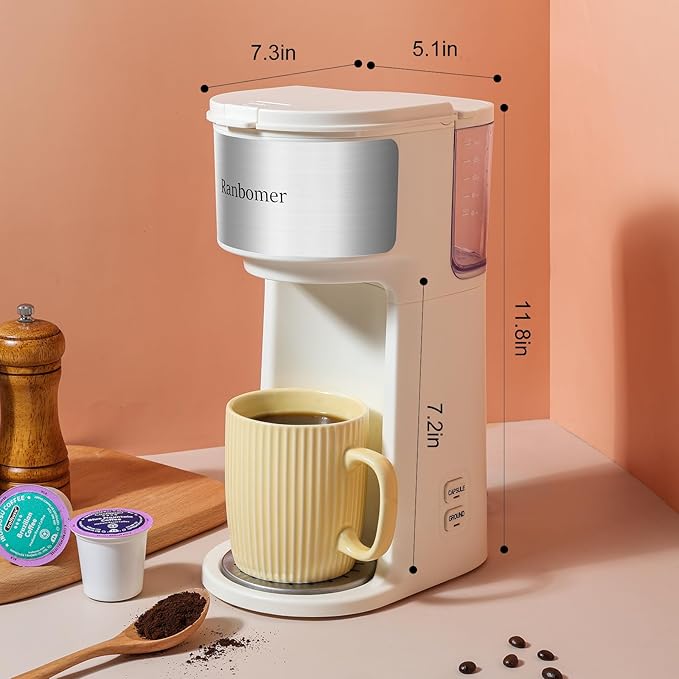 • COMPACT DESIGN: Space-saving single serve coffee maker with a sleek white finish, perfect for small kitchens, offices, or dorm rooms