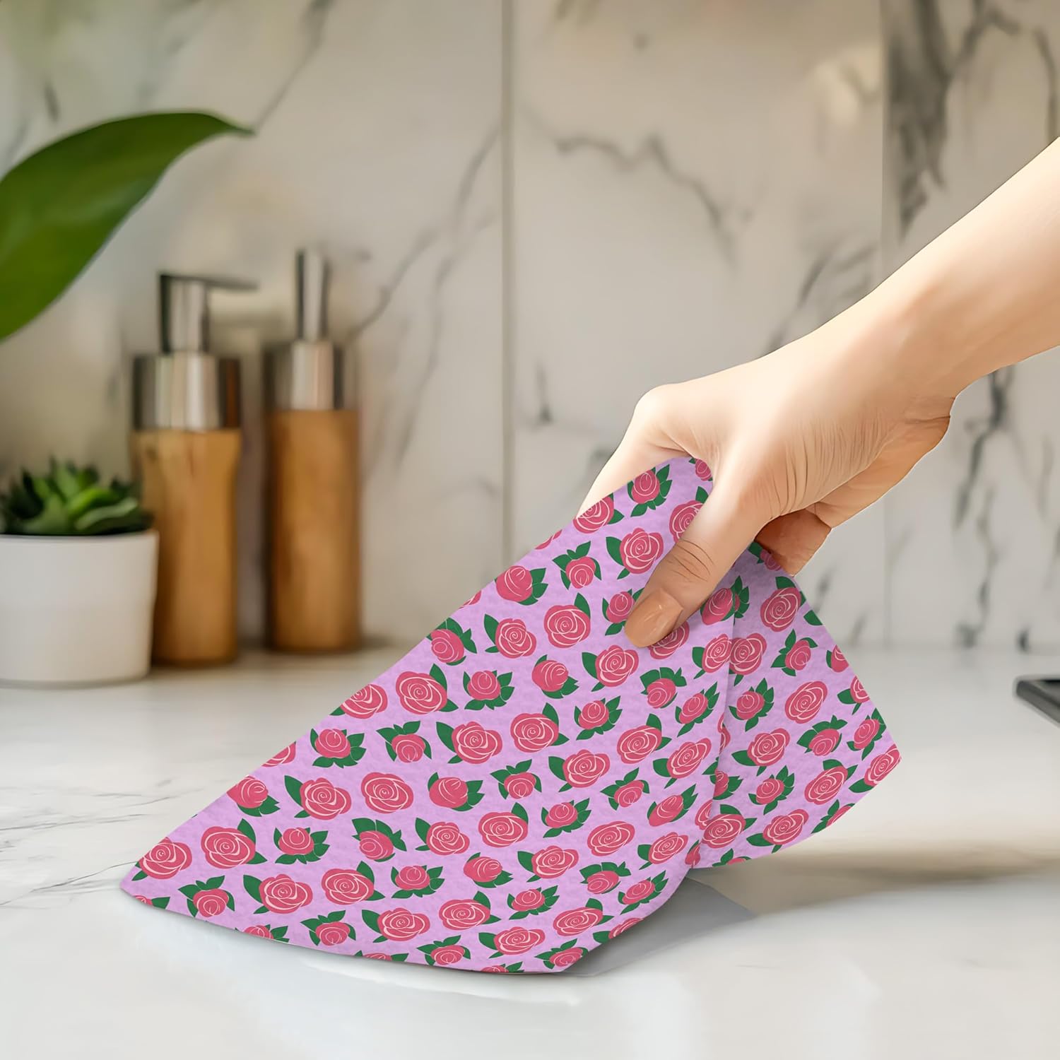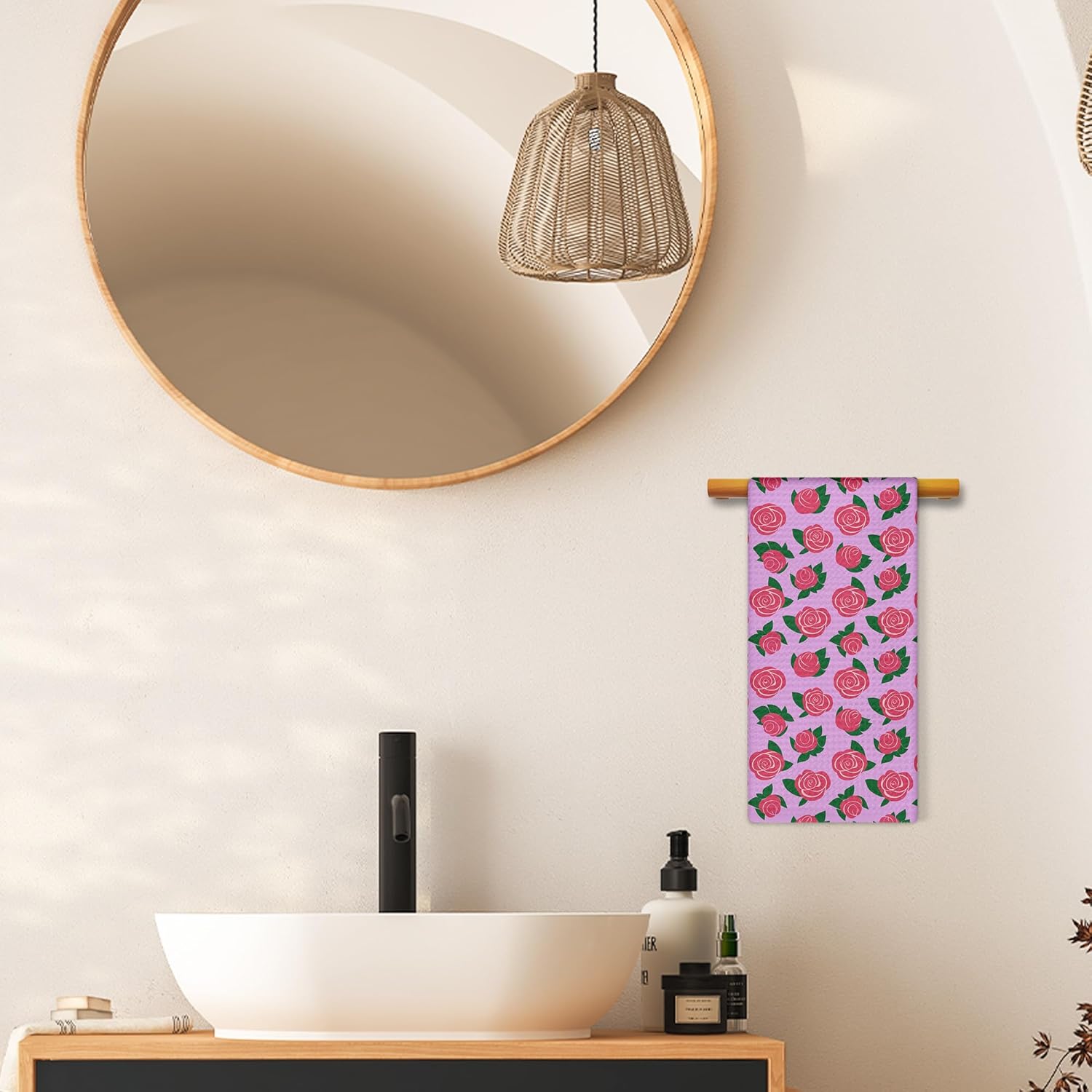 Pink Rose Floral Kitchen Towels, Rustic Farmhouse Hand Towels for Bathroom Decor, Cottagecore Rose Floral Botanical Dishcloths Dish Towel for Kitchen 16x24 Inches