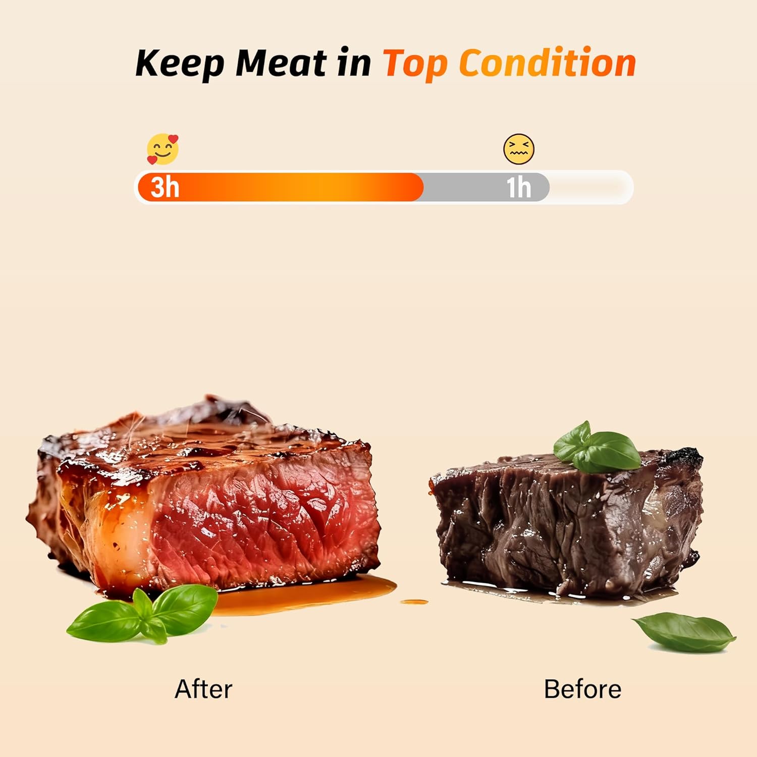 • 📂 Wide Opening & Smooth Zipper – Extra-wide mouth makes it easy to place and remove large cuts of meat. Durable metal zipper with easy-pull tab ensures smooth, secure closure every time.