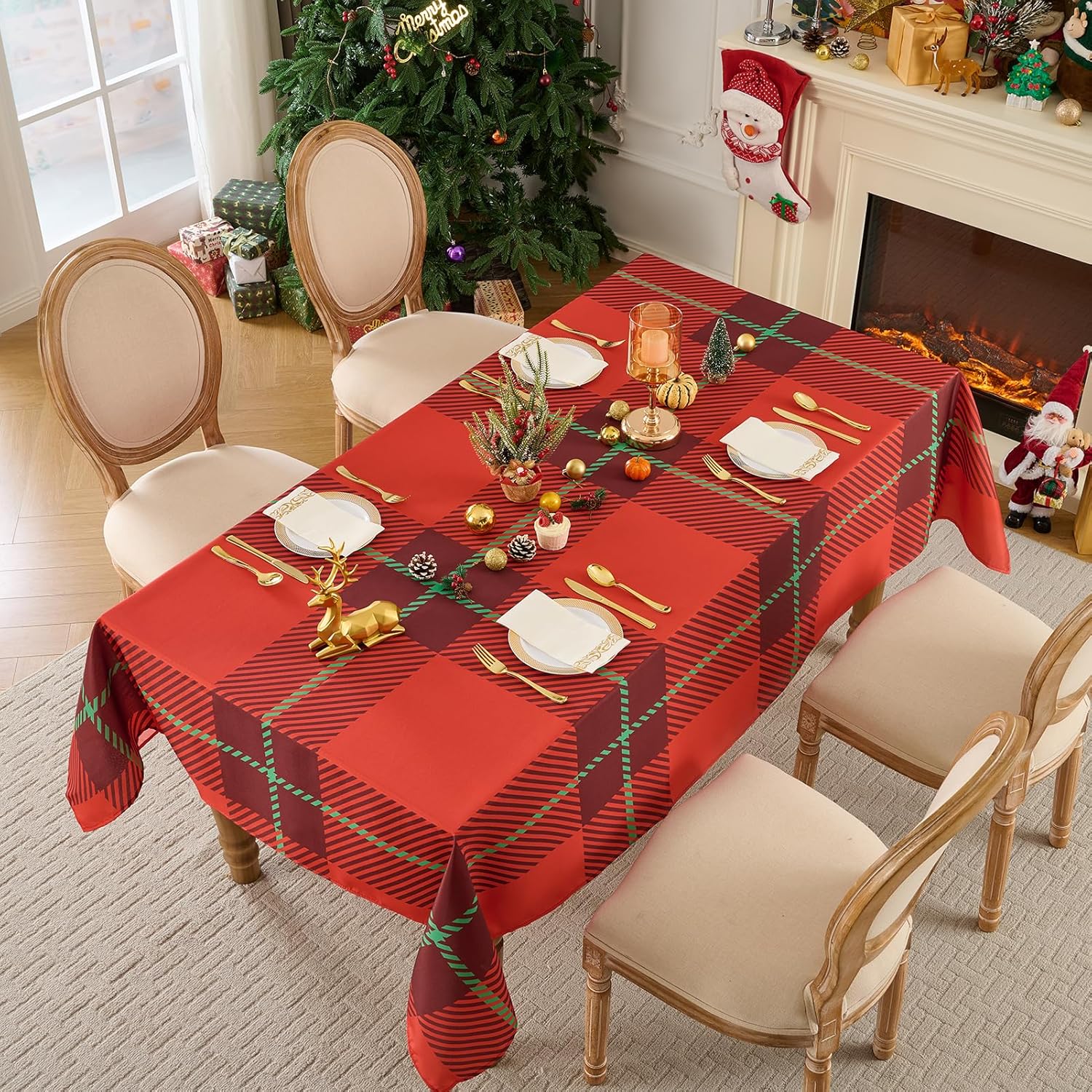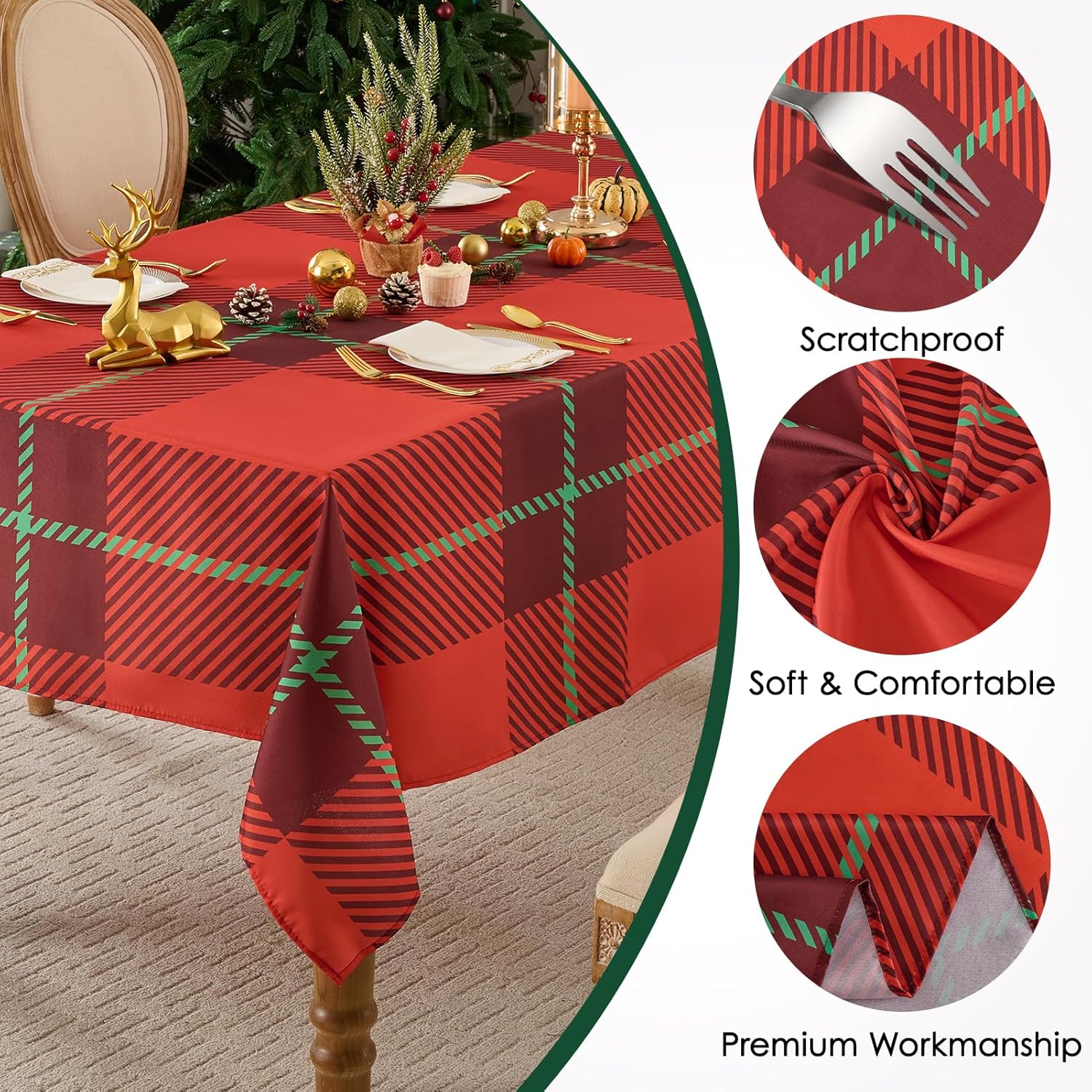 Christmas Tablecloth Rectangular 60x84 Inch Waterproof, Machine Washable Checkered Polyester Table Cover for Xmas Party, Winter Holiday Home Decoration in Festive Checkered Red 1pack