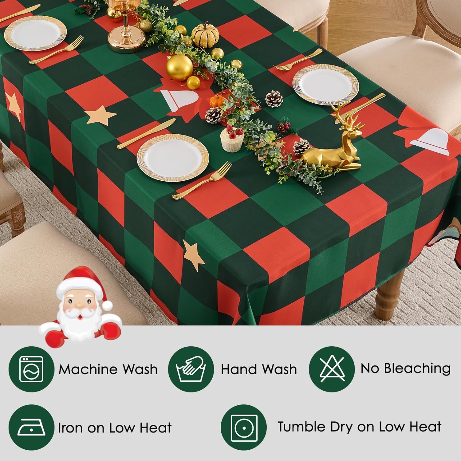 Christmas Tablecloth Rectangular 60x84 Inch Waterproof, Machine Washable Checkered Polyester Table Cover for Xmas Party, Winter Holiday Home Decoration in Festive Checkered Star 1pack