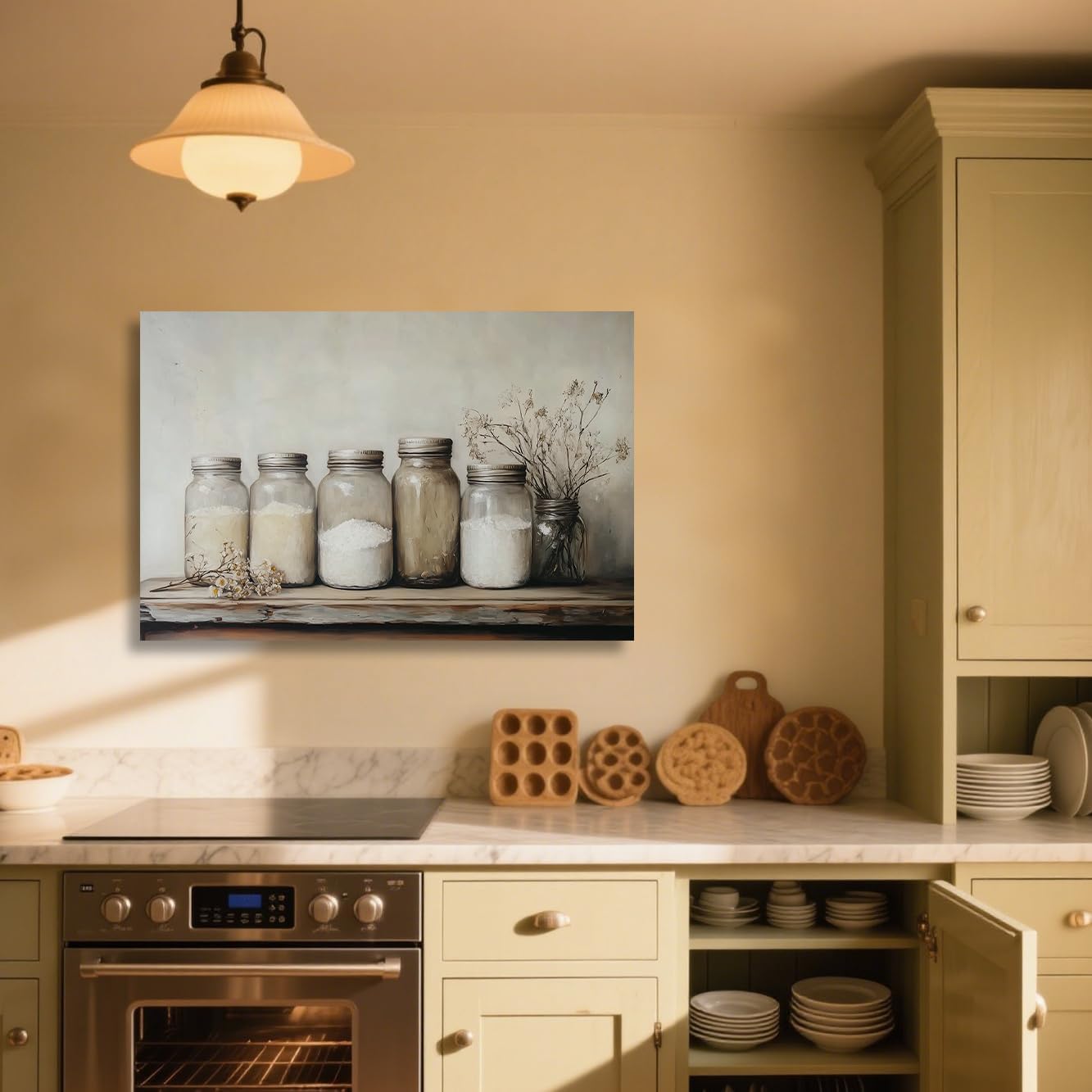 ZSHARTSWD Farm Kitchen Wall Art Country Mason Jar Spice Pictures Still Life Culinary Canvas Print Vintage Spices Food Painting Dining Room Home Decor Framed (Beige, 16.00" x 24.00")