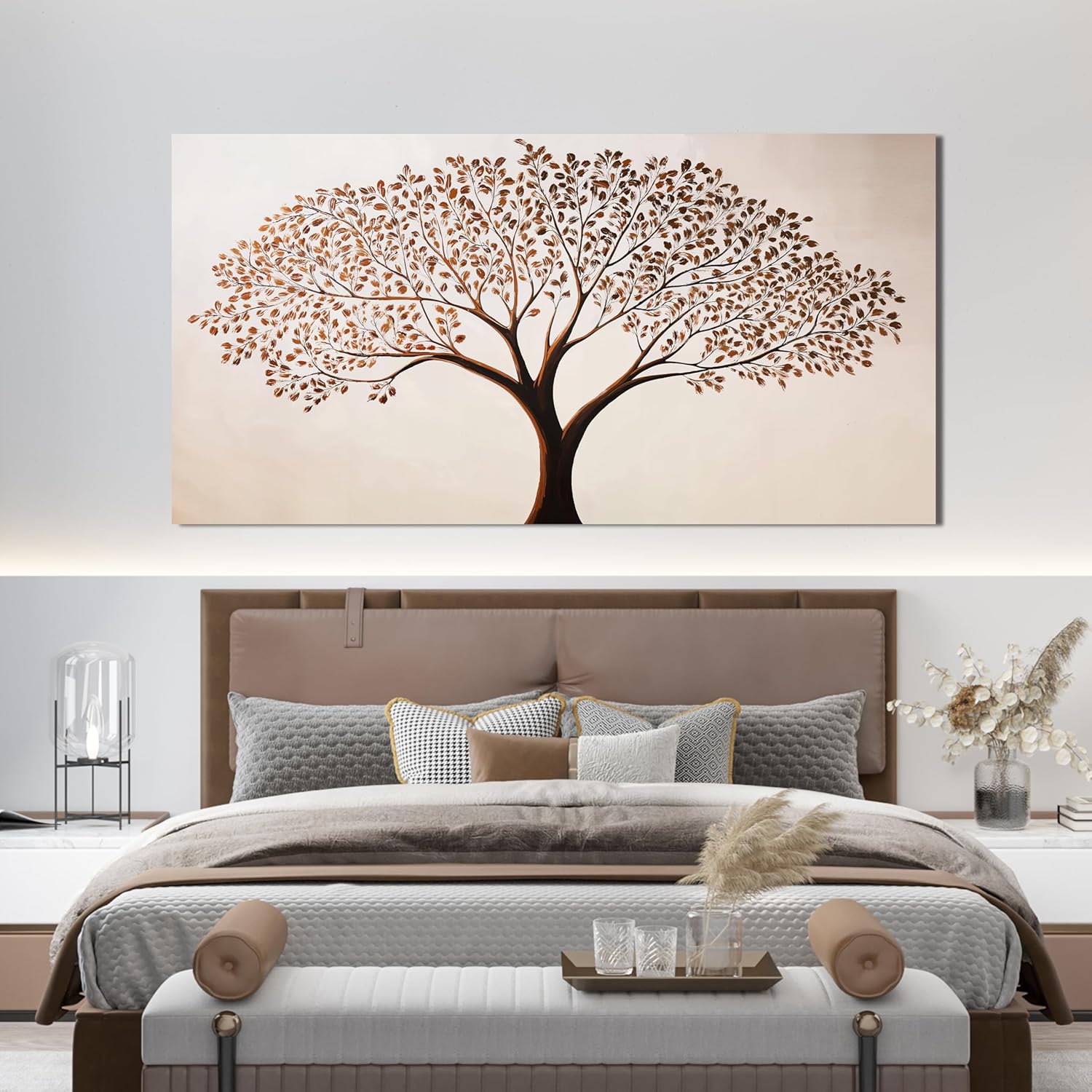 Canvas Art Wall Decor Modern Tree of Life Wall Art Prints Minimalist Botanical Wall Art Decorations Large Wall Art for Living Room Browm Artwork for Walls Bedroom Office Decor Aesthetic 24" X 48"