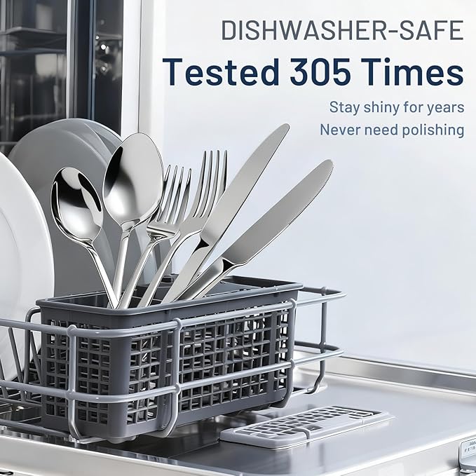 • 【305 CYCLES DISHWASHER SAFE】Our premium forks and spoons set isn’t just "durable"—we proved it with 305 tough dishwasher cycles. It still shines like new, no rust, no dullness. Skip fragile hand-wash sets or rusted replacements. Grab one that keeps up, stays fresh, and makes "long-lasting" real.