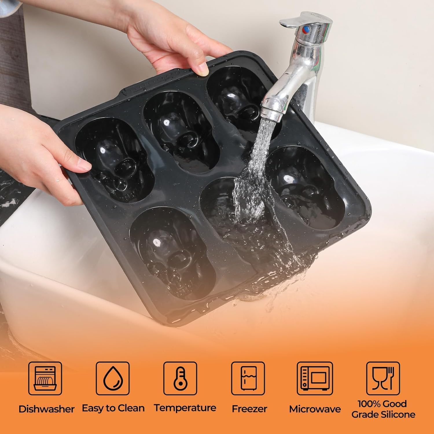 • 🥳【ENDLESS CREATIVITY, ONE MOLD】It's not just for cake! This 6-cavity skull mold is perfect for making chocolates, jello, pudding, mousse, ice cubes, and even soaps or resin crafts. A must-have tool for every Halloween enthusiast and DIY crafter
