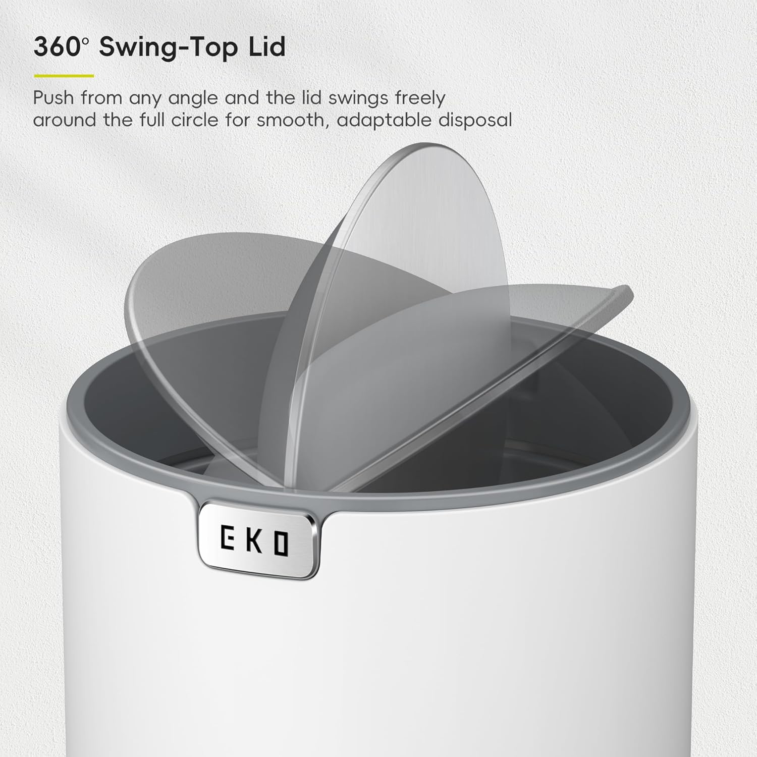 • Convenient Swing-Top Lid – With an enlarged swing lid and 360° gravity design, this swing top trash can allows smooth, effortless disposal and seals in odors automatically