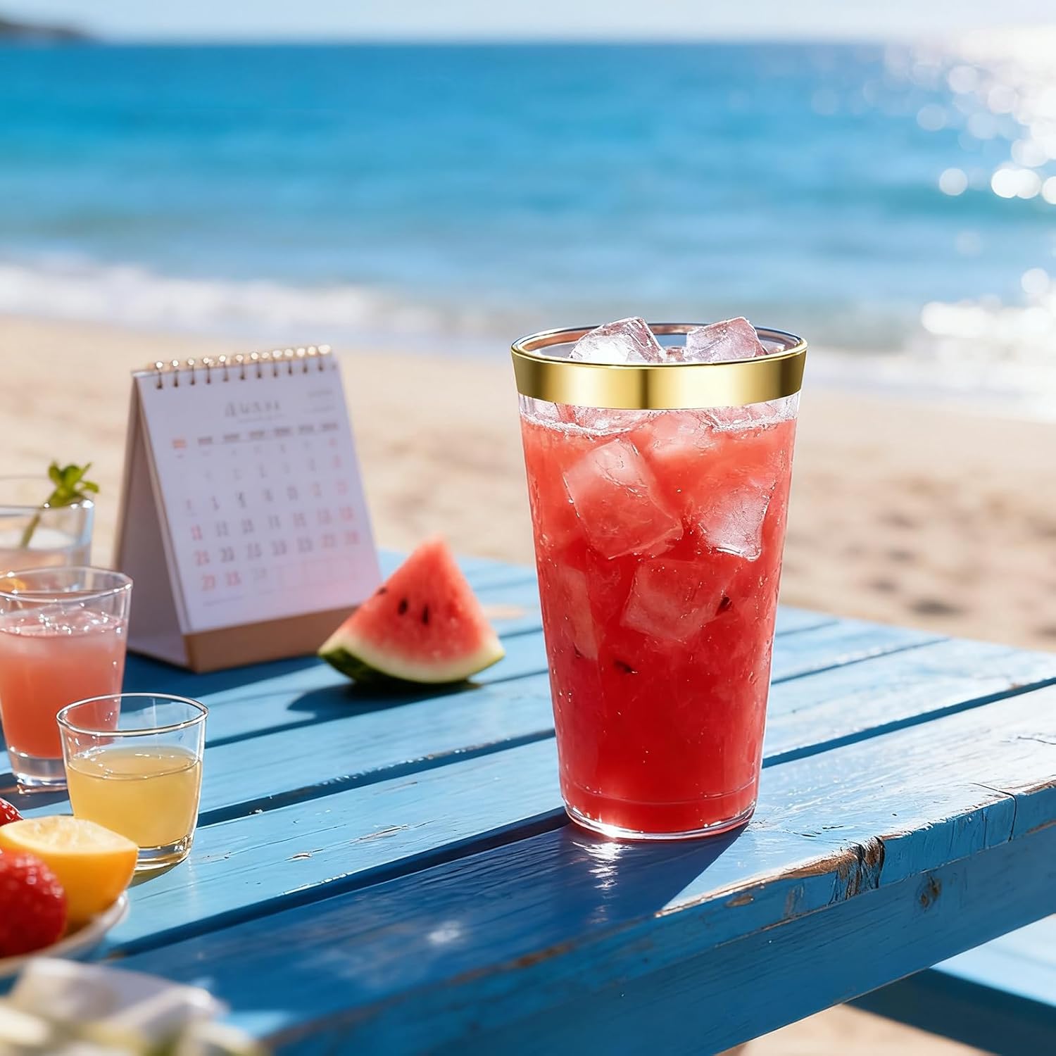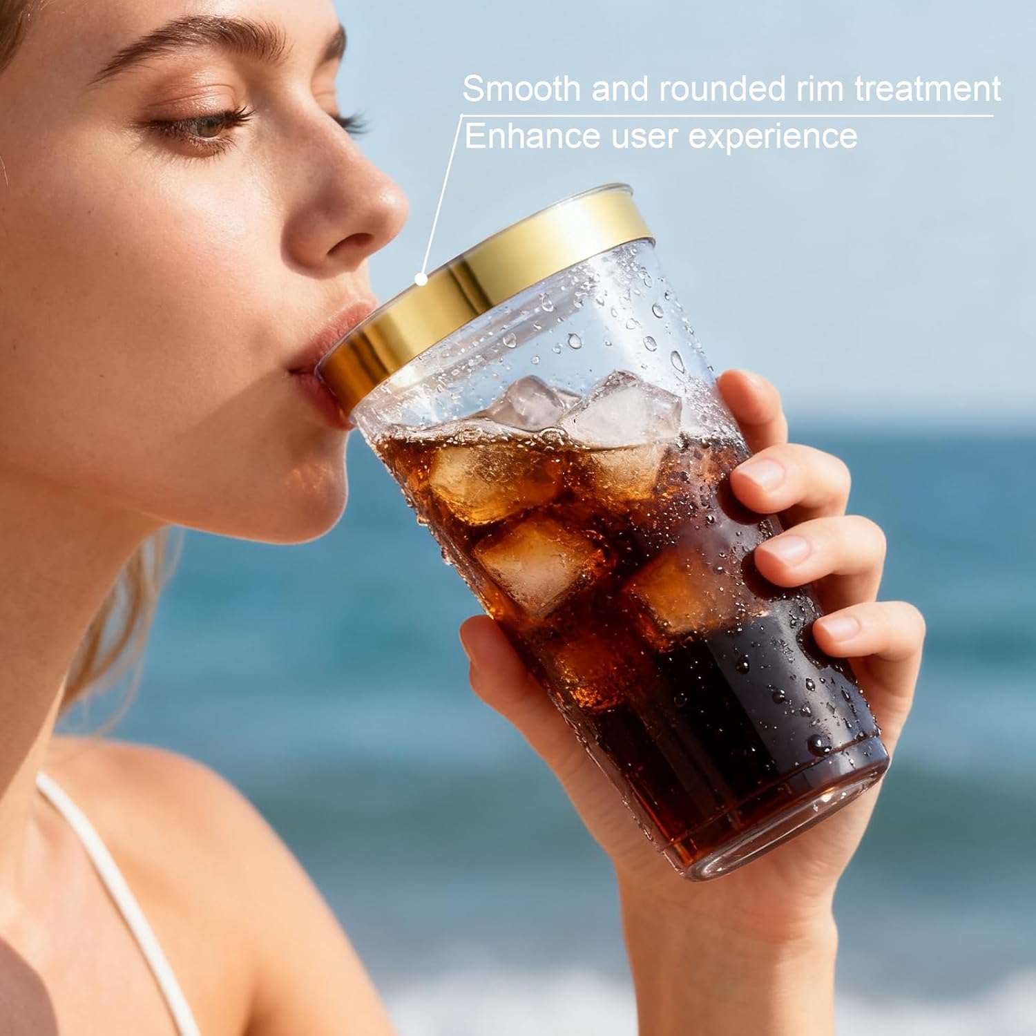• PREMIUM DESIGN: Clear plastic tumblers with elegant gold rim accent, perfect for upscale parties and special occasions while maintaining practical disposability
