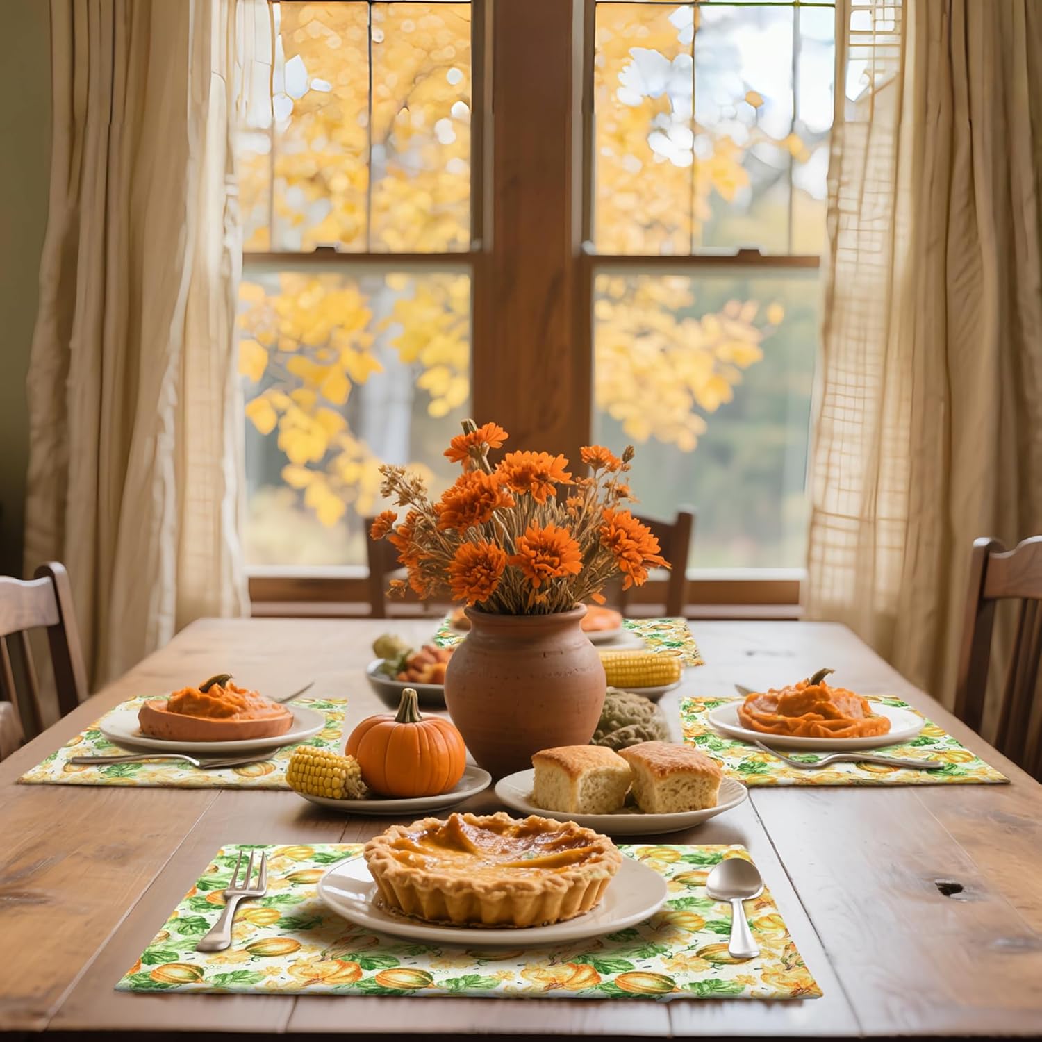 • Perfect Size & Protection: You will get pumpkin placemats set of 4 for fall season, our table placecmats with size 13x19 inches which enough for dinner plates and utensils, ideal for indoor or outdoor dining, from casual meals to festive gatherings