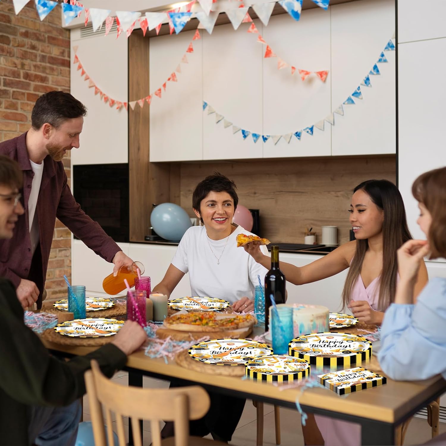 • Complete Party Set for 25 Guests– The 100-piece bundle includes 25 x 9-inch dinner plates, 25 x 7-inch dessert plates, 25 matching napkins, and 25 yellow forks. All essentials are included for a coordinated and easy setup.