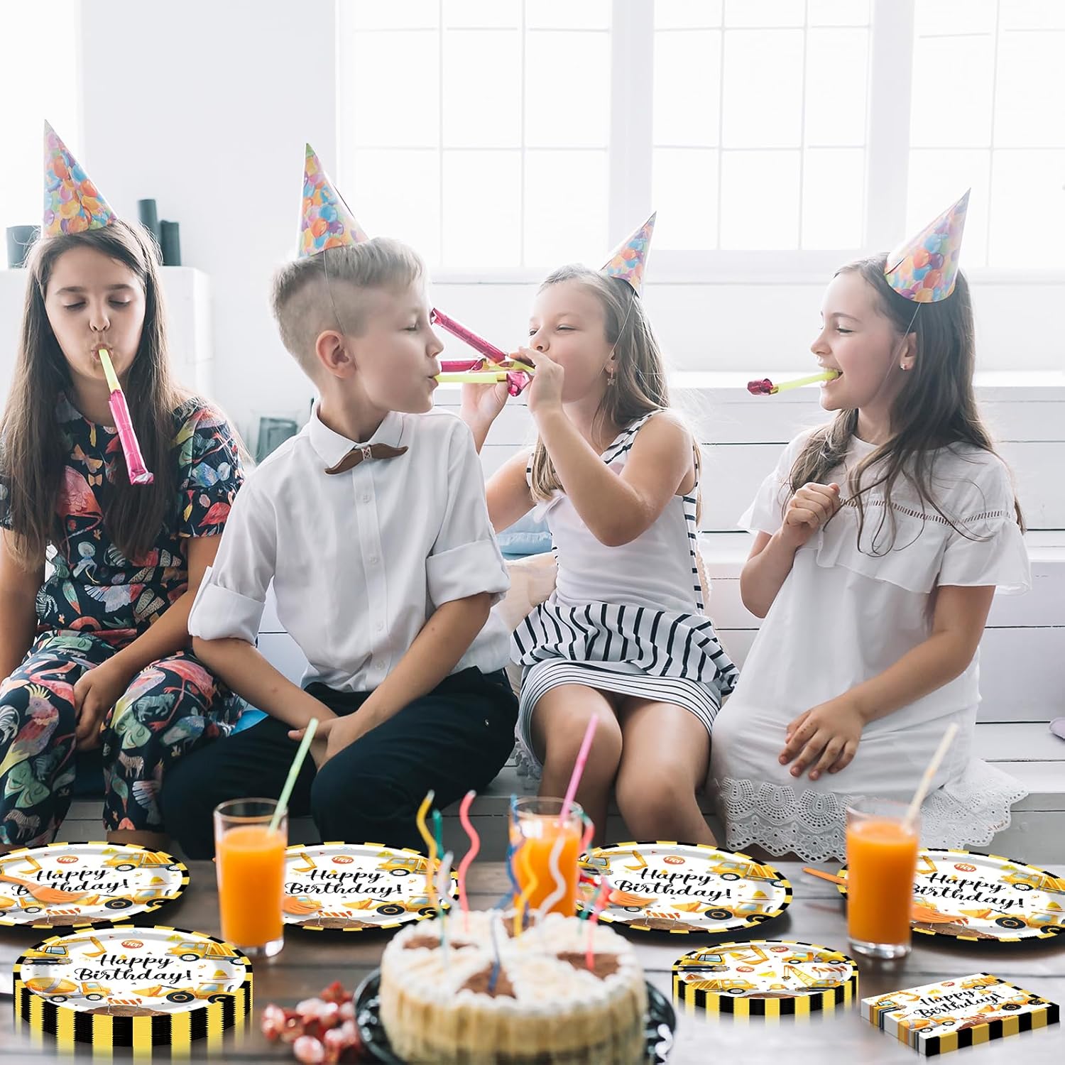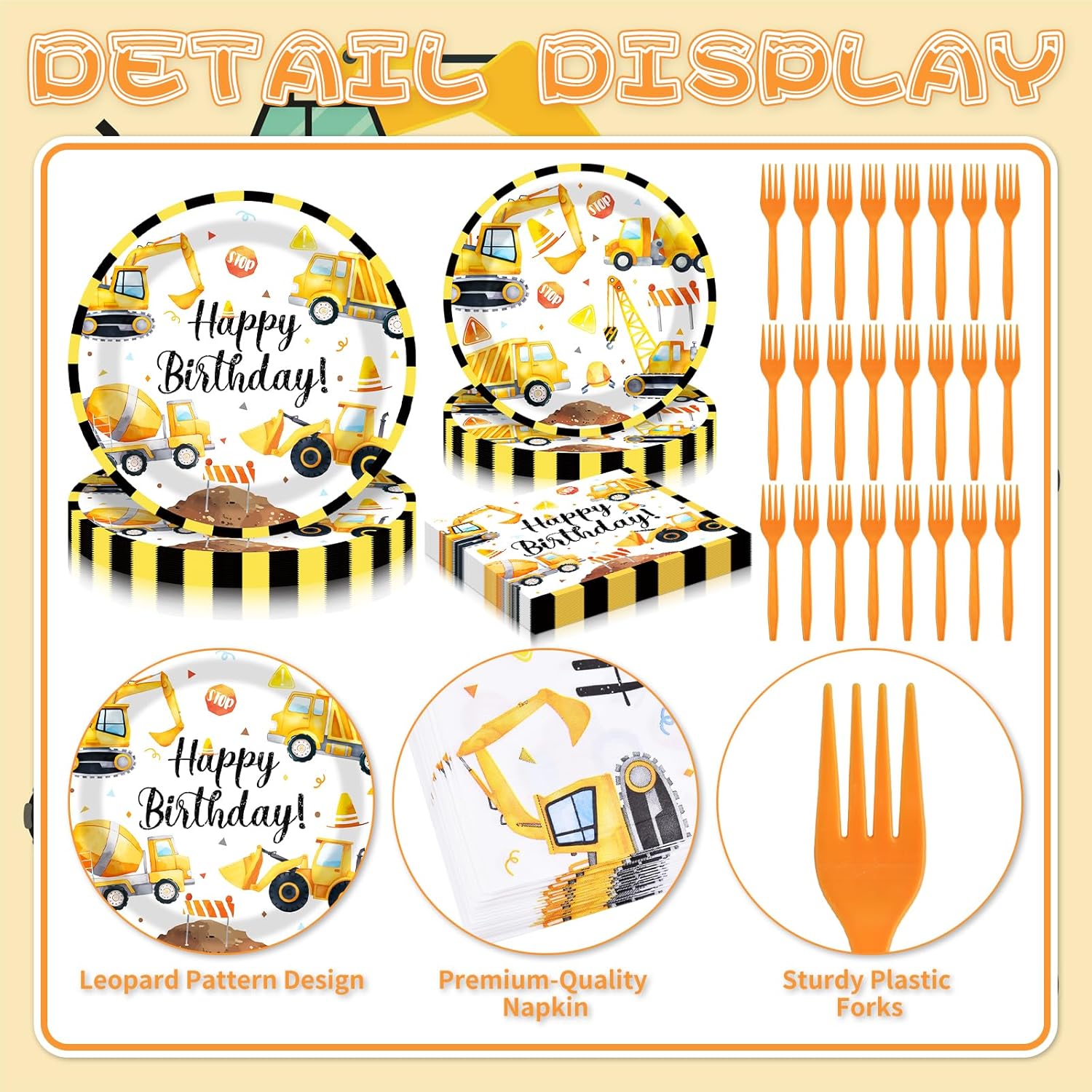 • Fun Construction Vehicle Design– This construction truck party tableware set features bright yellow diggers, dump trucks, and caution signs, making it a perfect match for kids who love vehicles and construction themes. Great for birthday parties, school events, and playdates.