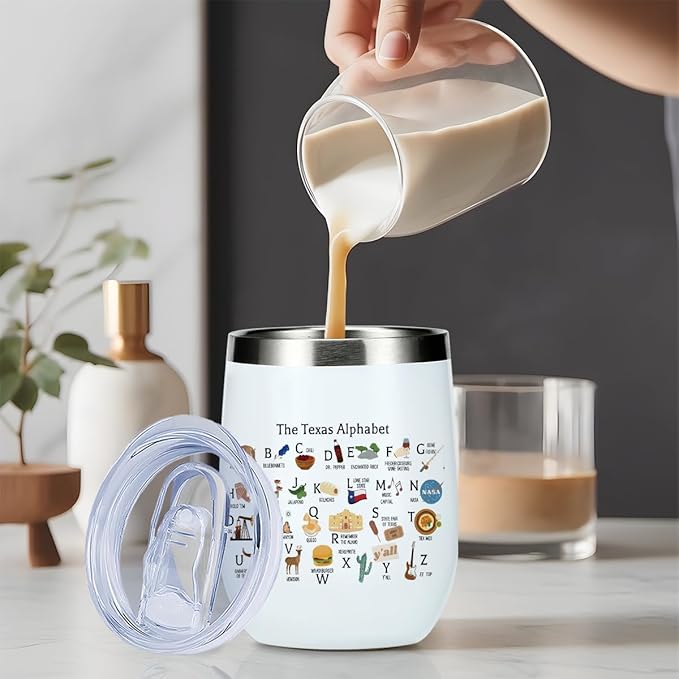 Cute Texas State Souvenirs Gifts Wine Tumbler,Texas Themed Gifts for Women Her Friend Coworkers Friendship Birthday Christmas Coffee Cup Insulated Stainless Steel 12oz Wine Glass with Lid, Straw