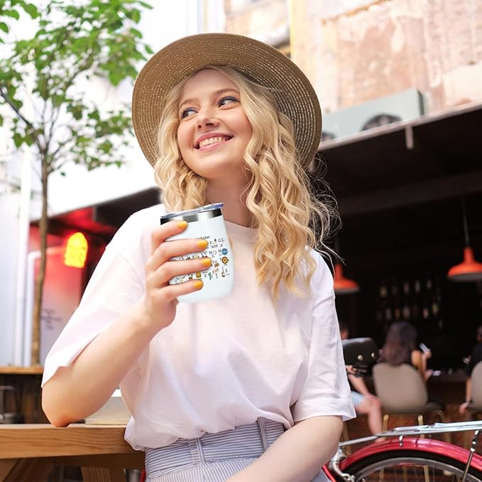 • 【Cute Wine Tumbler】Our wine tumbler glass is designed with practicality and style in mind. The coffee mug 12oz tumbler for women, girls, boys, men, best friends, relatives, sisters, besties, mom, grandma, boss, therapist, leader, mentor, teacher, HR, Nurse, or coworker etc.
