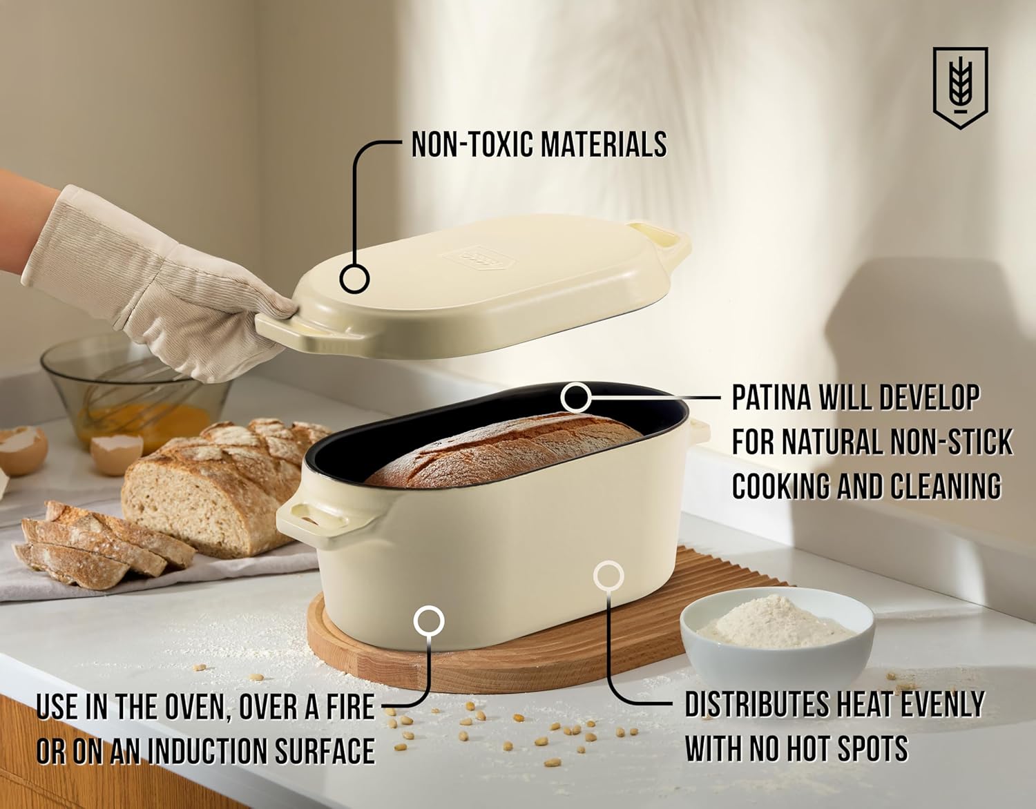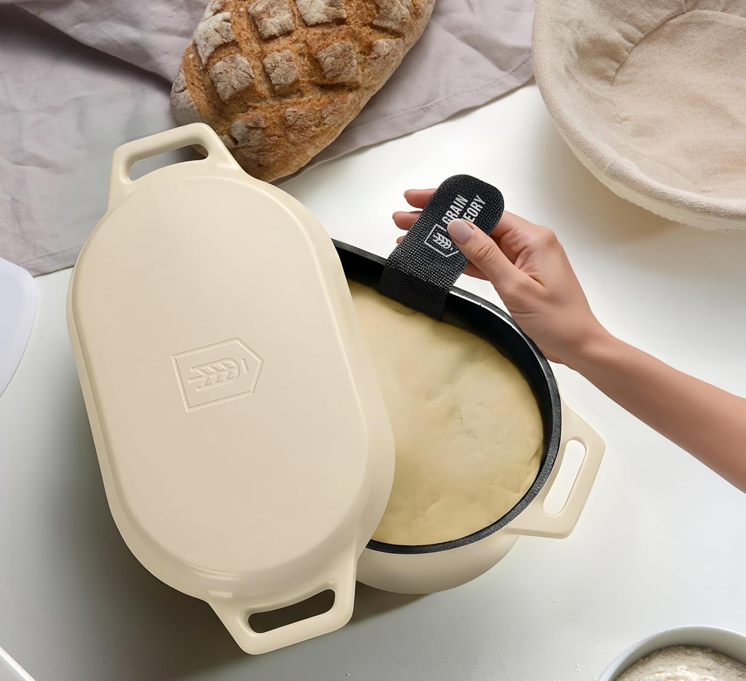 • One Pot Wonder: Proof, Score & Bake: This Dutch oven does it all. Use it as a proofing box, then bake in the very same pot. Line with a parchment paper or a sling, cover with the lid, and let your dough rise. When ready, score and transfer straight into a preheated oven. Fresh, crusty sourdough with zero hassle. Includes recipe book for step-by-step guidance!