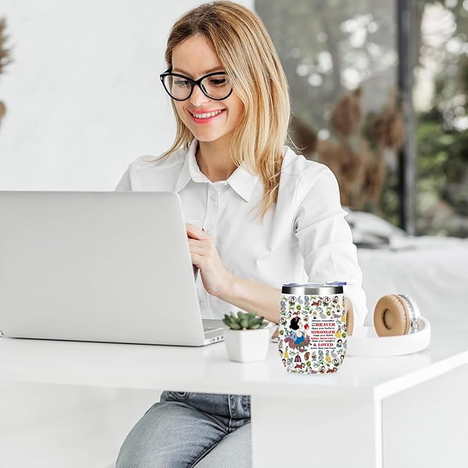 • 【Cute Wine Tumbler】Our wine tumbler glass is designed with practicality and style in mind. The coffee mug 12oz tumbler for women, girls, boys, men, best friends, relatives, sisters, besties, mom, grandma, boss, therapist, leader, mentor, teacher, HR, Nurse, or coworker etc.