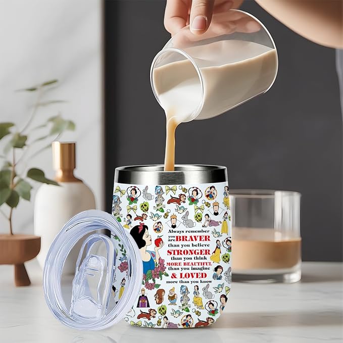 Magical Cute Wine Tumbler, Inspired Character Christmas Birthday Gifts for Women Sister Magic Inspirational Encouragement Gifts Coffee Cup Insulated Stainless Steel 12oz Wine Glass with Lid, Straw
