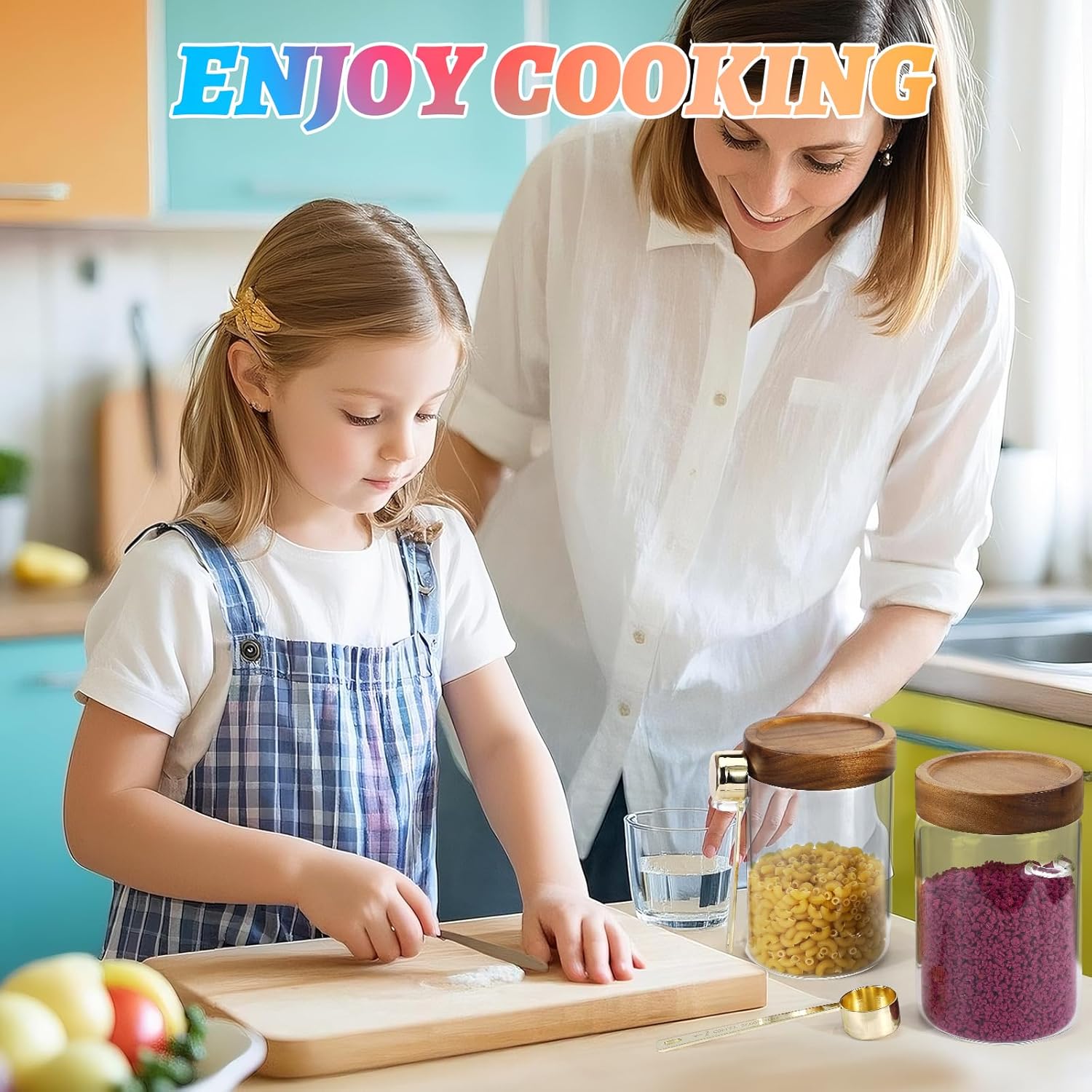 • 【MULTIPURPOSE GLASS FOOD STORAGE CONTAINER SET】Kitchen glass jar set includes ( 30oz/900ml ),meeting all your storage need,small glass bottles with lids perfect for storing and preserving a variety of ingredients including pasta, ground coffee,cookies,dried beans, pepper, jams, chutneys, rice, sugar, flour, tea, coffee beans, spices, biscuits, candy,cheese,flour, sugar, seeds,nut,cashew,Grains, flour,cereal storage ,etc. In addition to kitchen storage, it is also suitable for baking fermentation jars, kimchi pickling, brewing and so on.